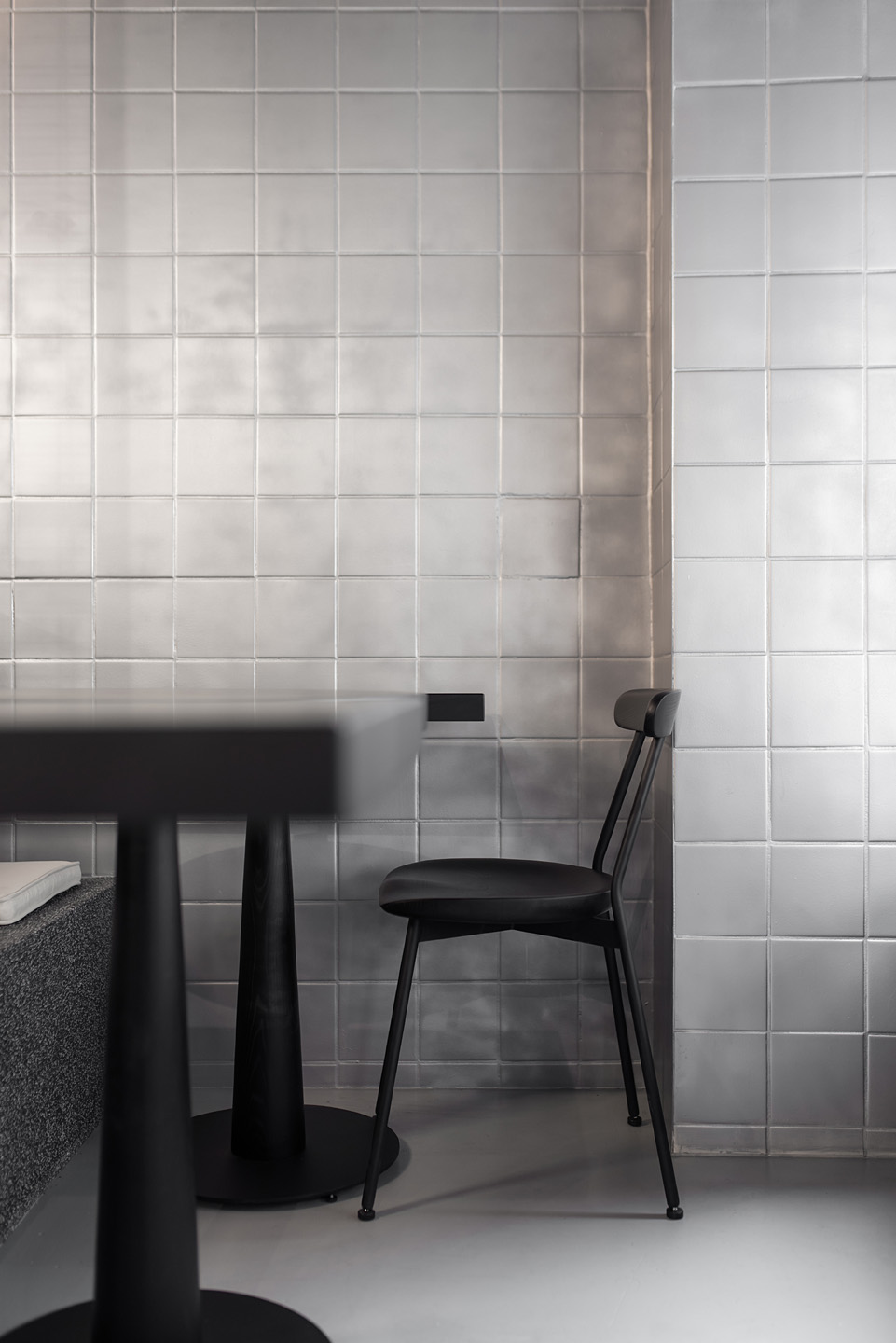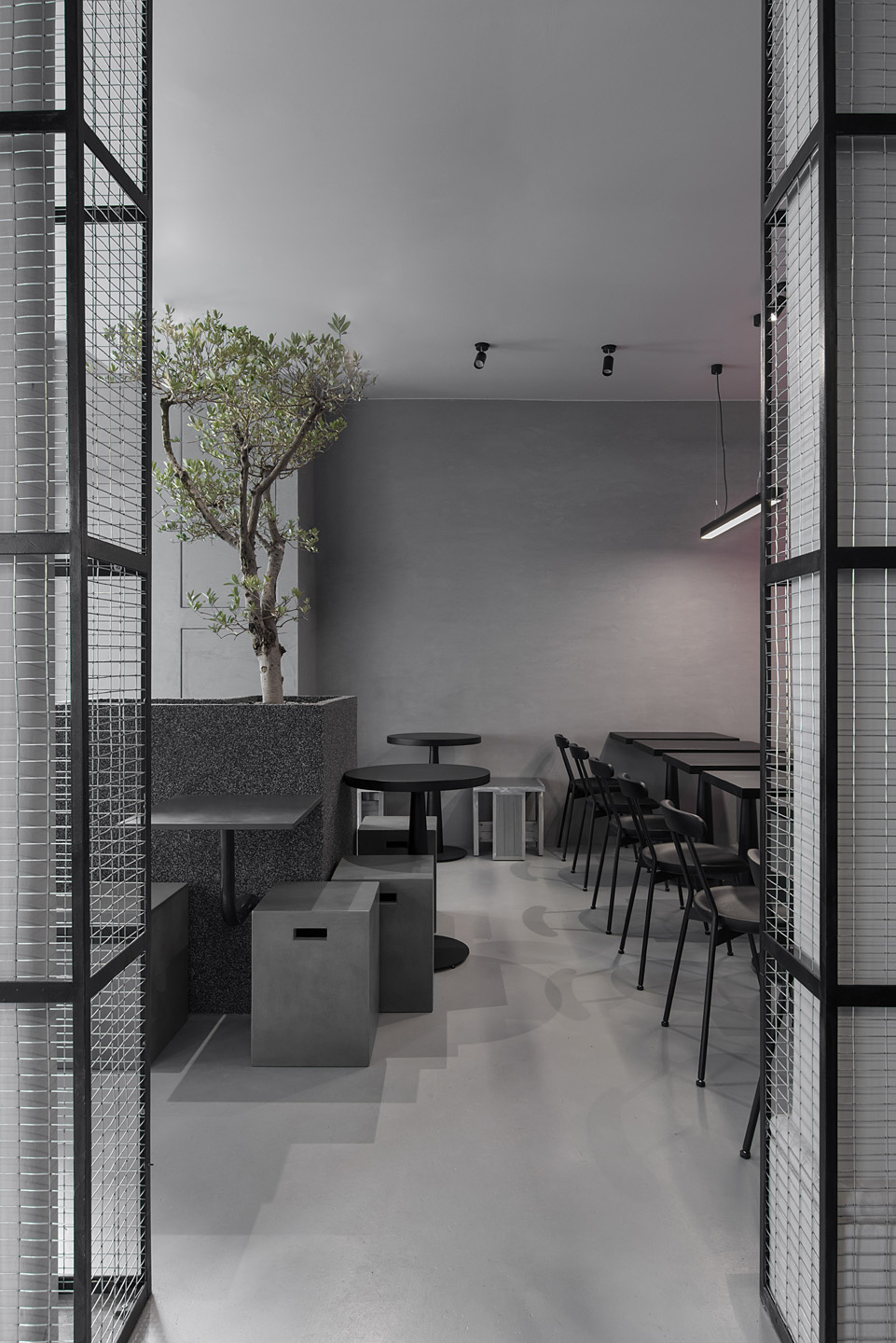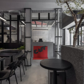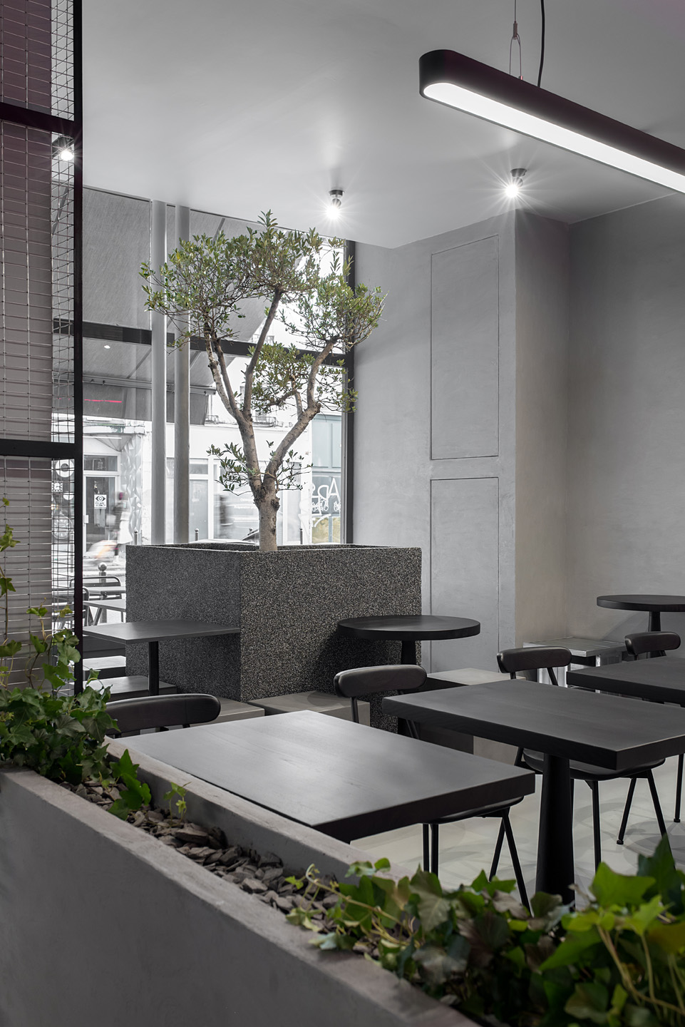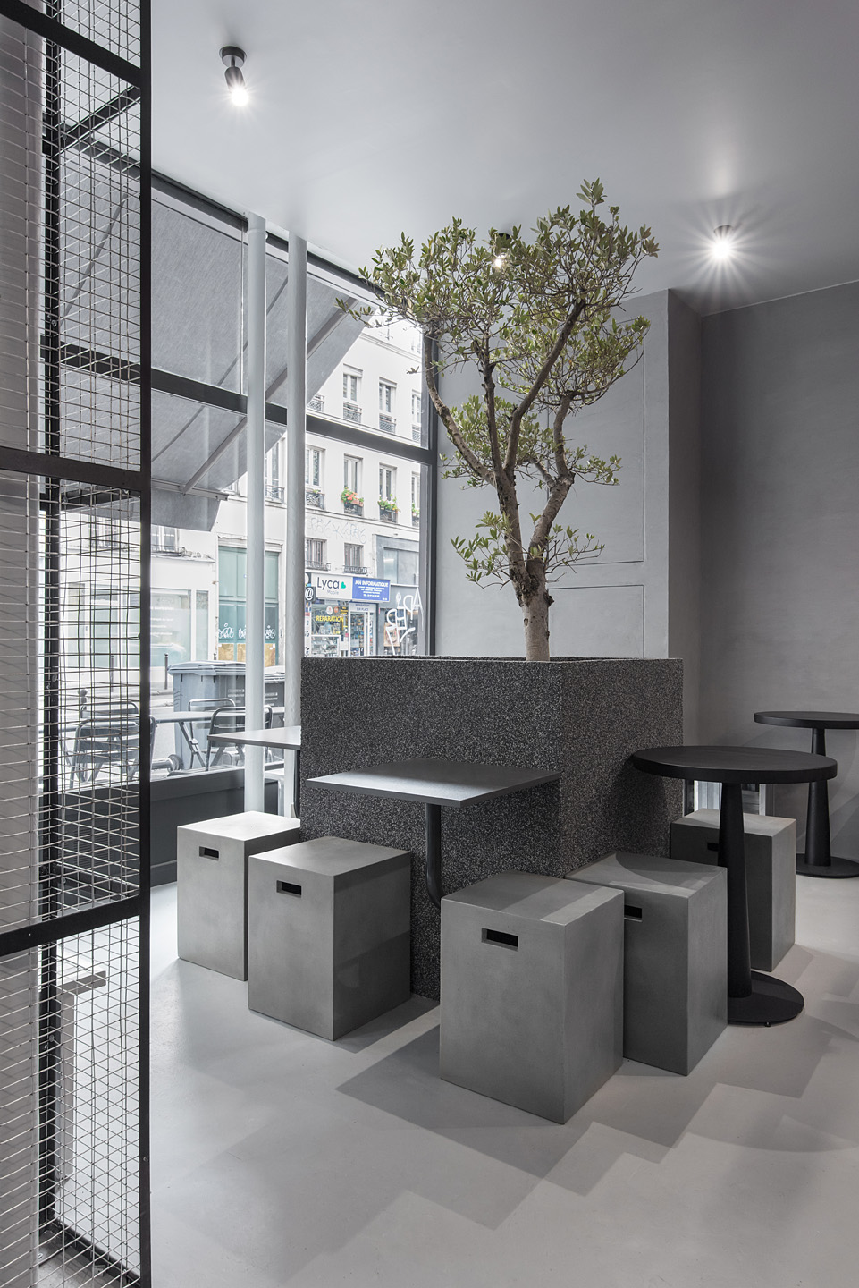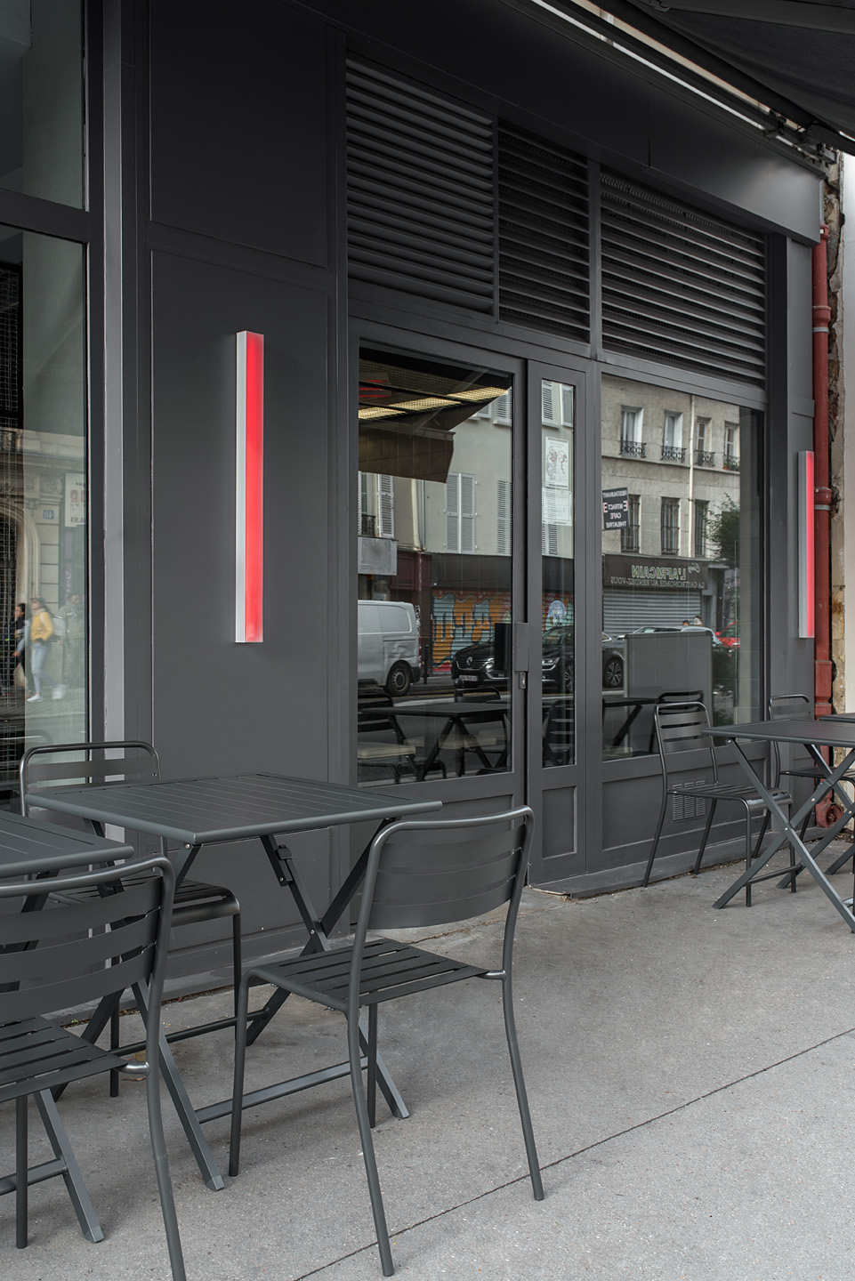 В основу концепції покладено ідею вуличної їжі, і щоб підкреслити цю атмосферу в дизайні інтер’єру, студія використала грубі фактури: бетон і метал. Фактично весь дизайн розроблений в одній колірній гамі: поєднання різних відтінків сірого і чорного. Особливу увагу приділили освітленню. Яскраво-червоне освітлення на стелі та стінах контрастує з темним ґрунтом і створює атмосферу, яка не є типовою паризькою.