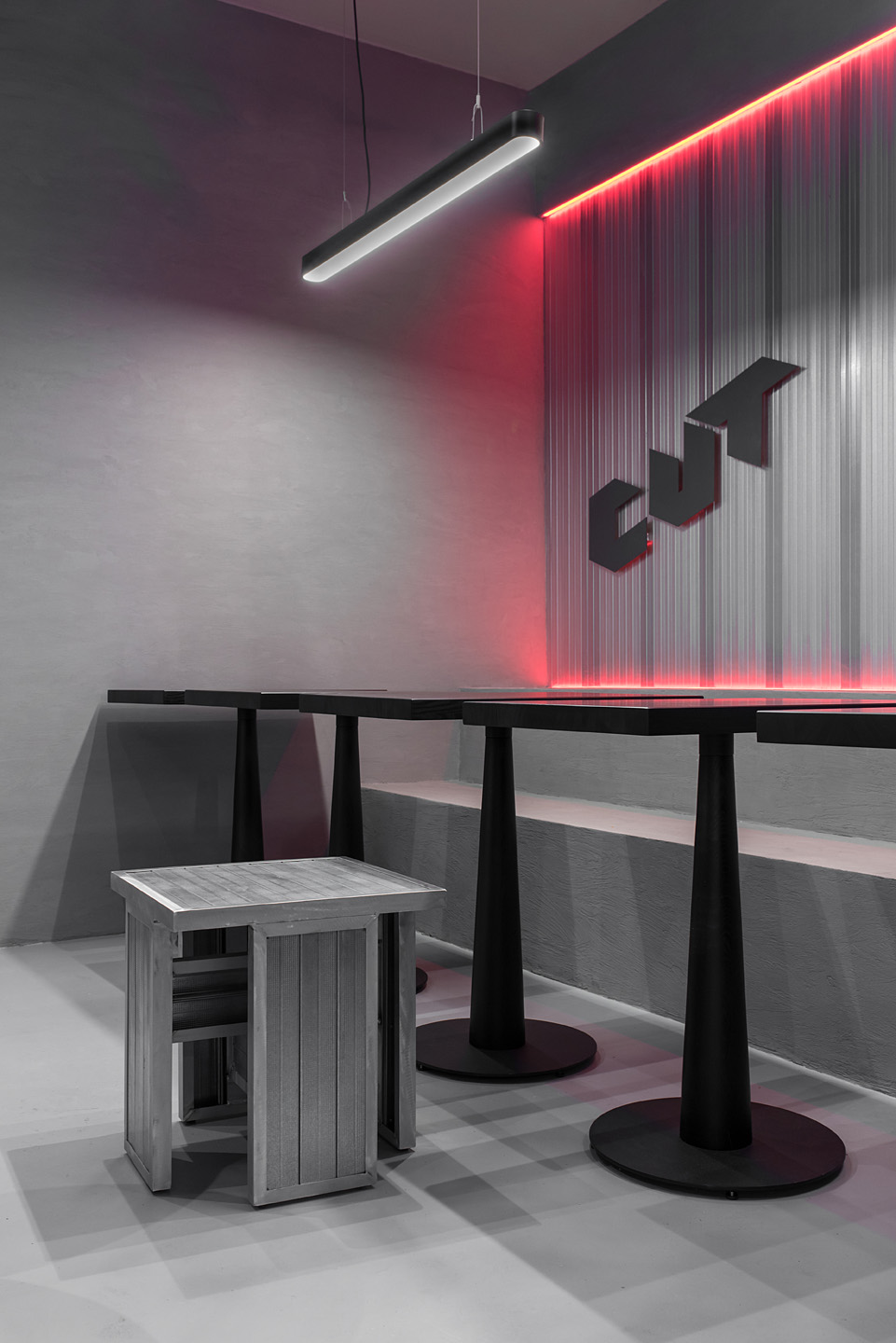 У центрі Парижа відкрилося бістро CUT, яке одразу привернуло увагу перехожих своїм незвичним для Франції брутальним стилем. Between the Walls почали розвивати цей проєкт наприкінці червня 2023 року, а за 4,5 місяці кафе відкрило свої двері для перших клієнтів. За розробленням дизайну стоїть креативний дует — Вікторія Карєва та Андрій Анісімов.