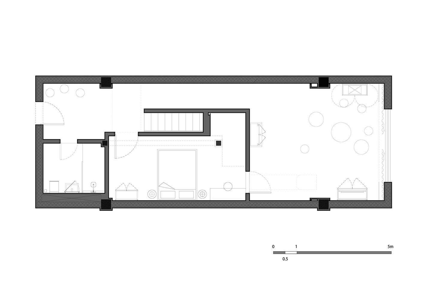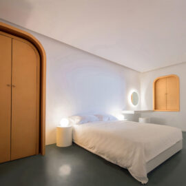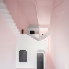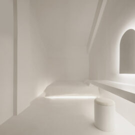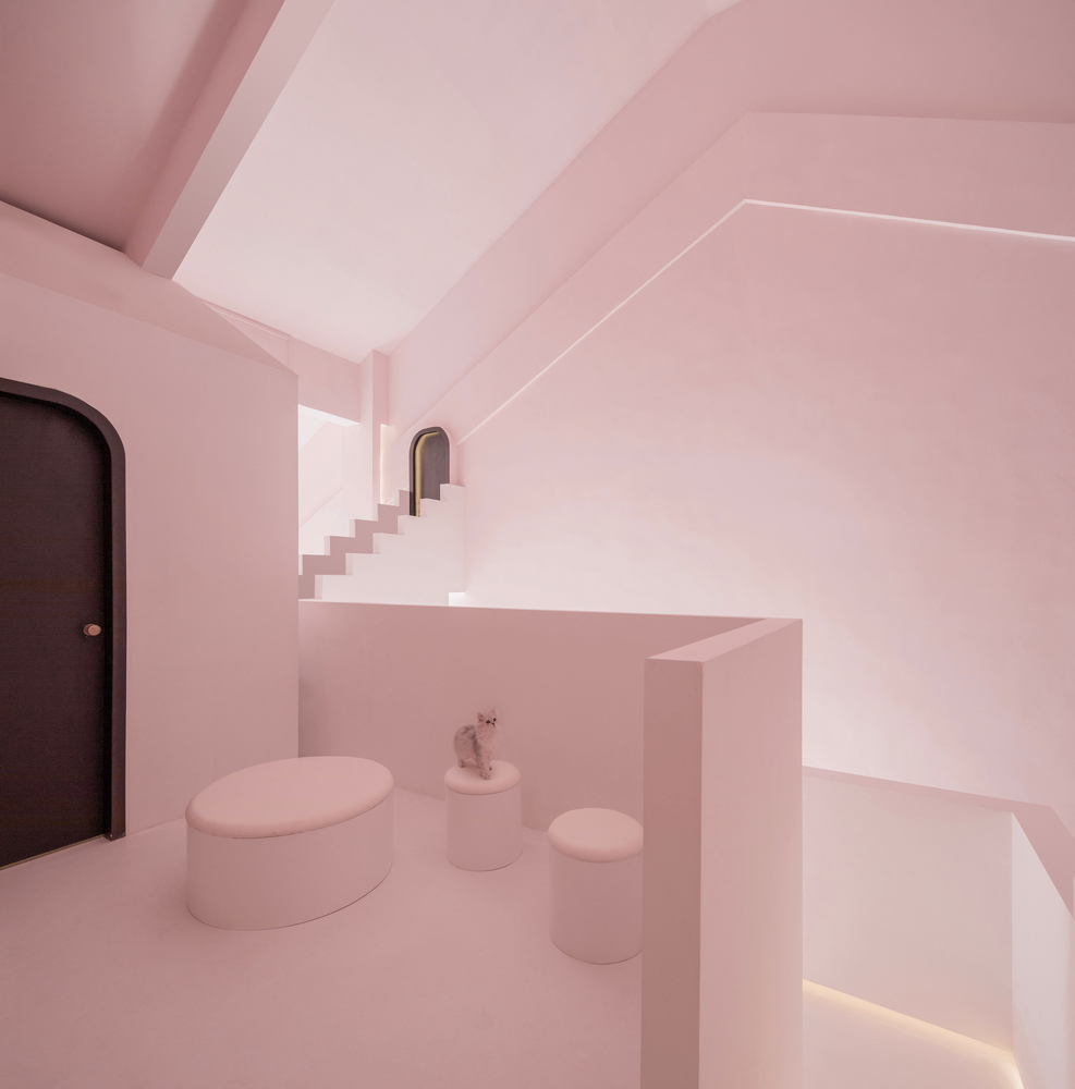 Номер «Мечты» решен в минималистической цветовой палитре бледно-розового и белого, где черные двери выглядят порталами в потусторонний мир. Одна из спален – полностью белая, но скрытая подсветка создает в ней игру теней, подчеркивающую абстрактную геометрию пространства.