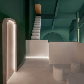 «Мы старались создать загадочное, «невозможное» бесшовное пространство, с трансформирующимися двумерными и трехмерными элементами, используя приемы оптических иллюзий» – сообщили в Studio 10.