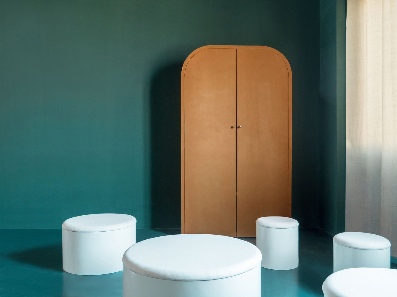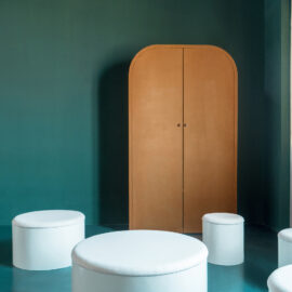 Вся функциональная начинка – электроприборы, провода, розетки и выключатели – скрыты в шкафах или в основании пуфов-тумбочек, что делает комнаты еще ирреальнее. Площадь каждого из апартаментов не превышает 70-ти квадратных метров, однако эффект лабиринта создает впечатление бесконечного или закольцованного пространства.