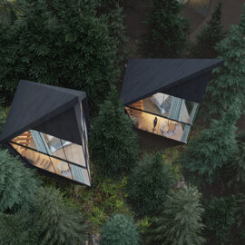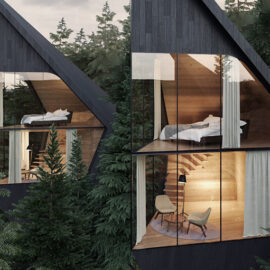 Сооружения имеют вытянутую остроконечную форму, на которую дизайнеров вдохновили лестные окрестности. Изнутри домики представляют собой двухуровневые блоки (35-45 квадратных метров на этаже). Внизу будет оборудована зона для чтения и отдыха, а верхняя часть будет предназначена для сна.
