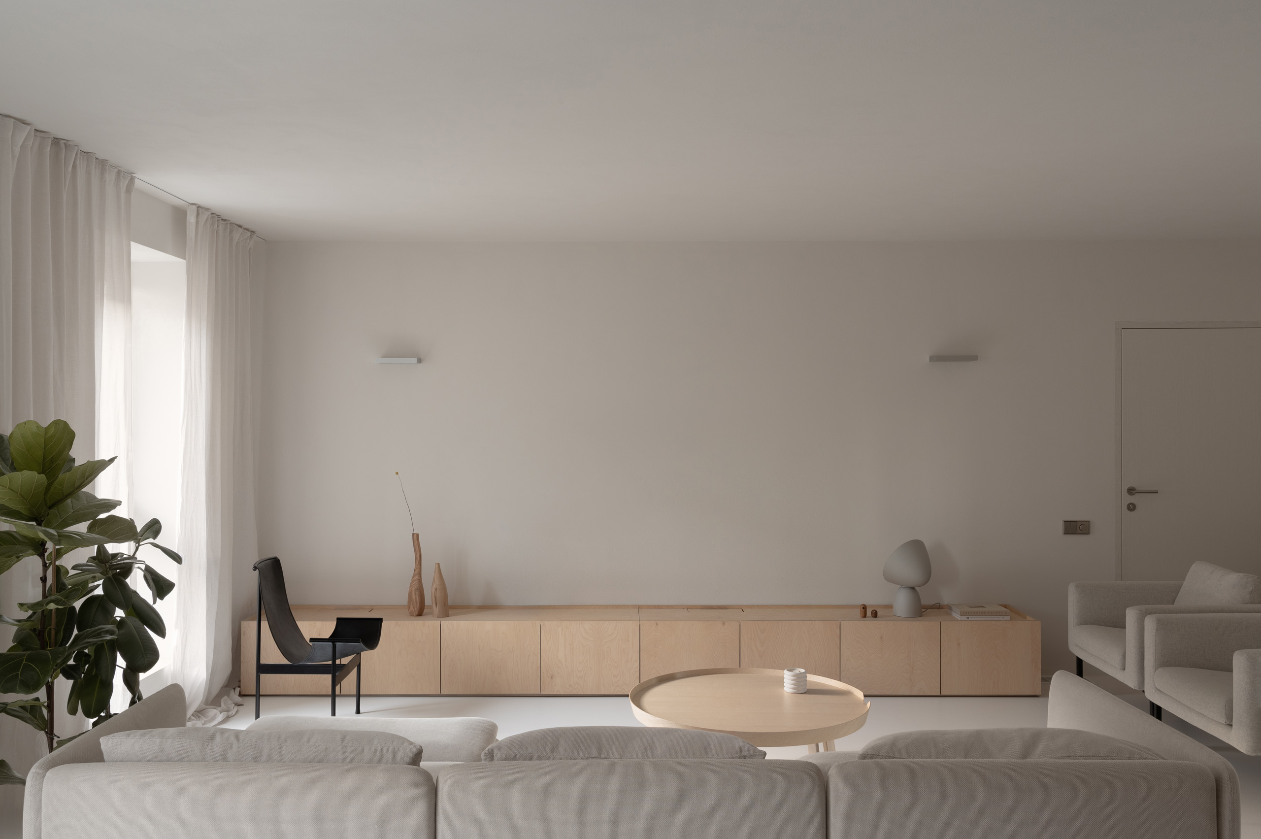 Інтер’єр цієї квартири дизайнерка Яра Лисюк створила для власної родини. У світлий мінімалістичний простір вона інтегрувала об’єкти галерейного дизайну та складні технологічні рішення, на які наважуються далеко не всі її клієнти.
