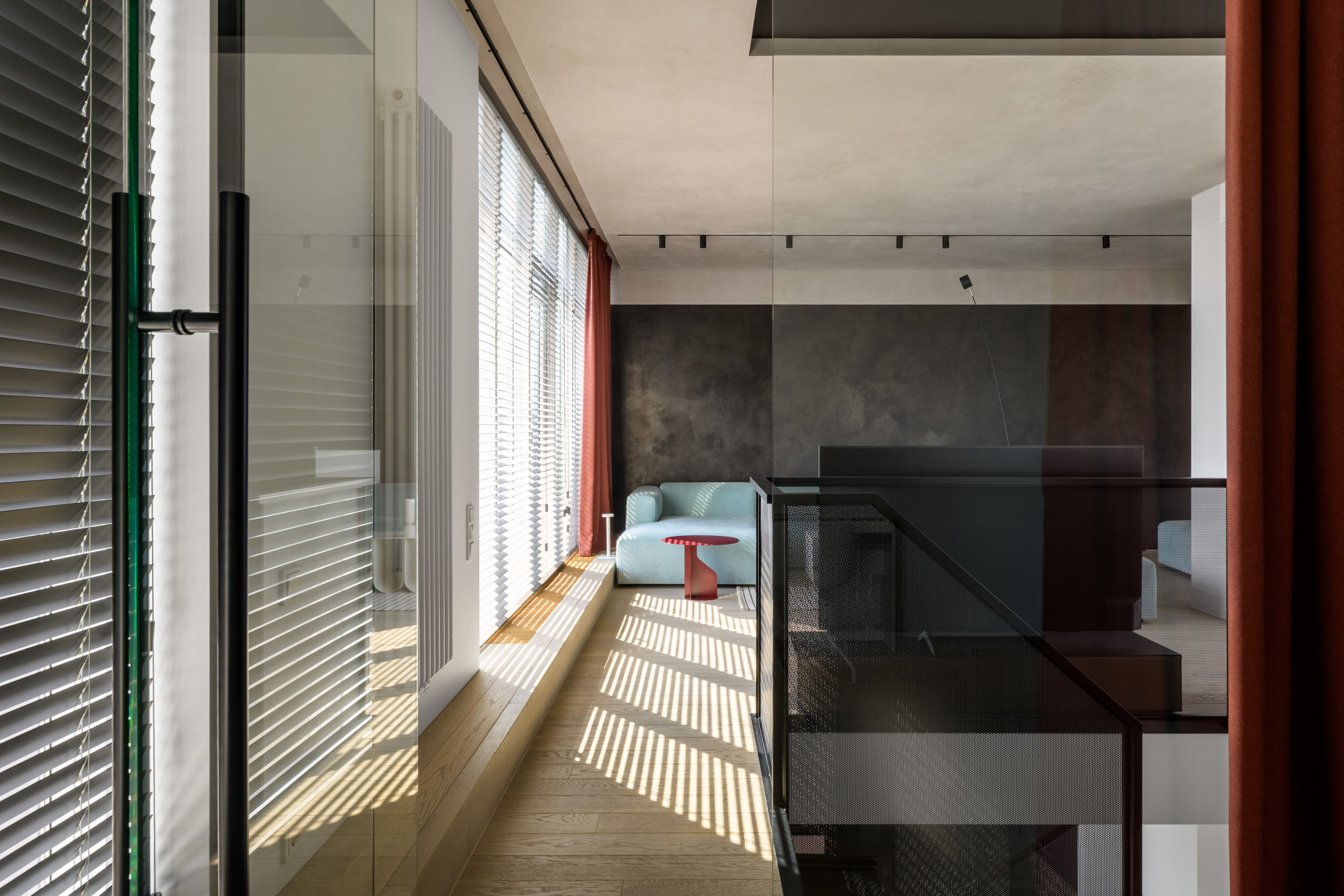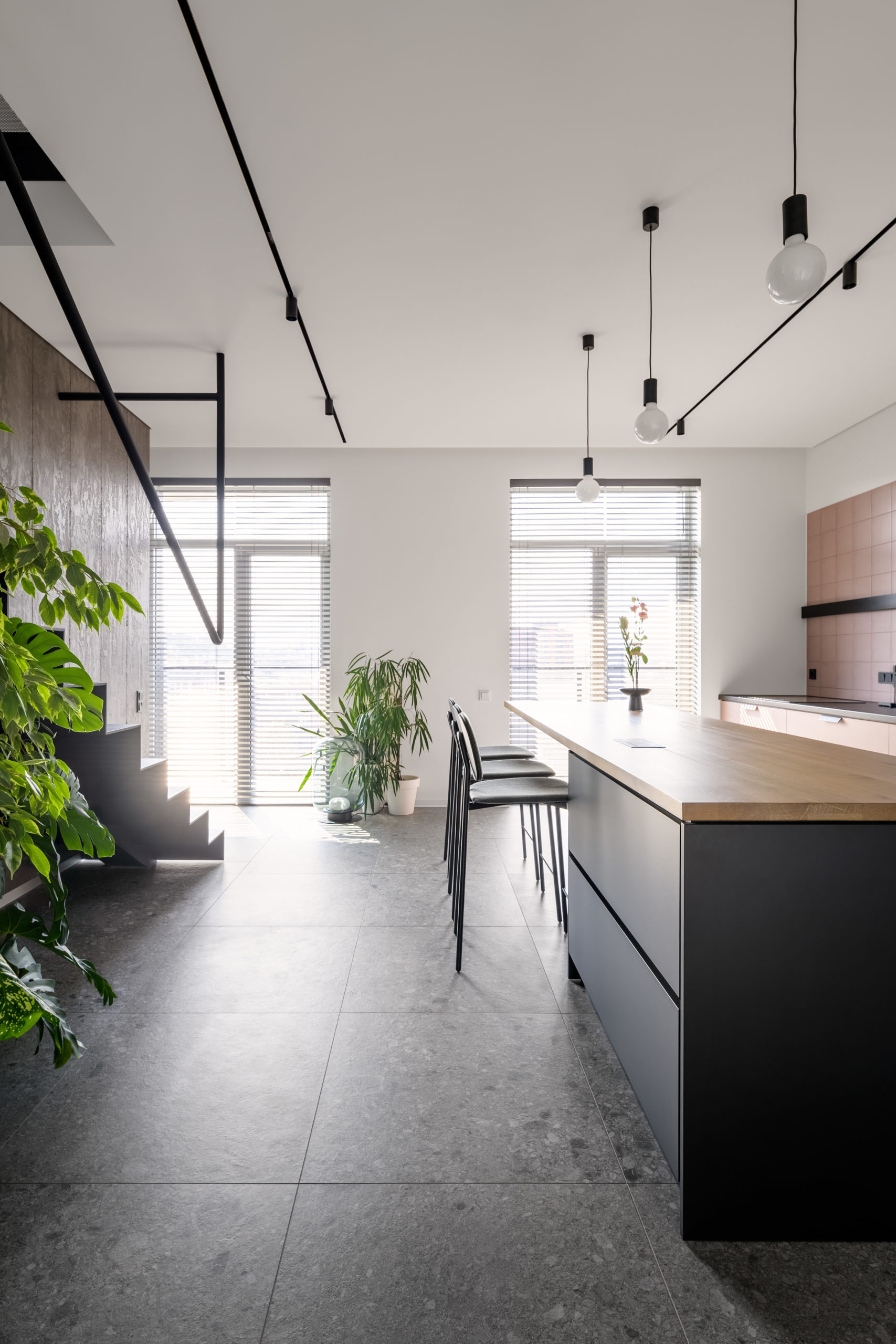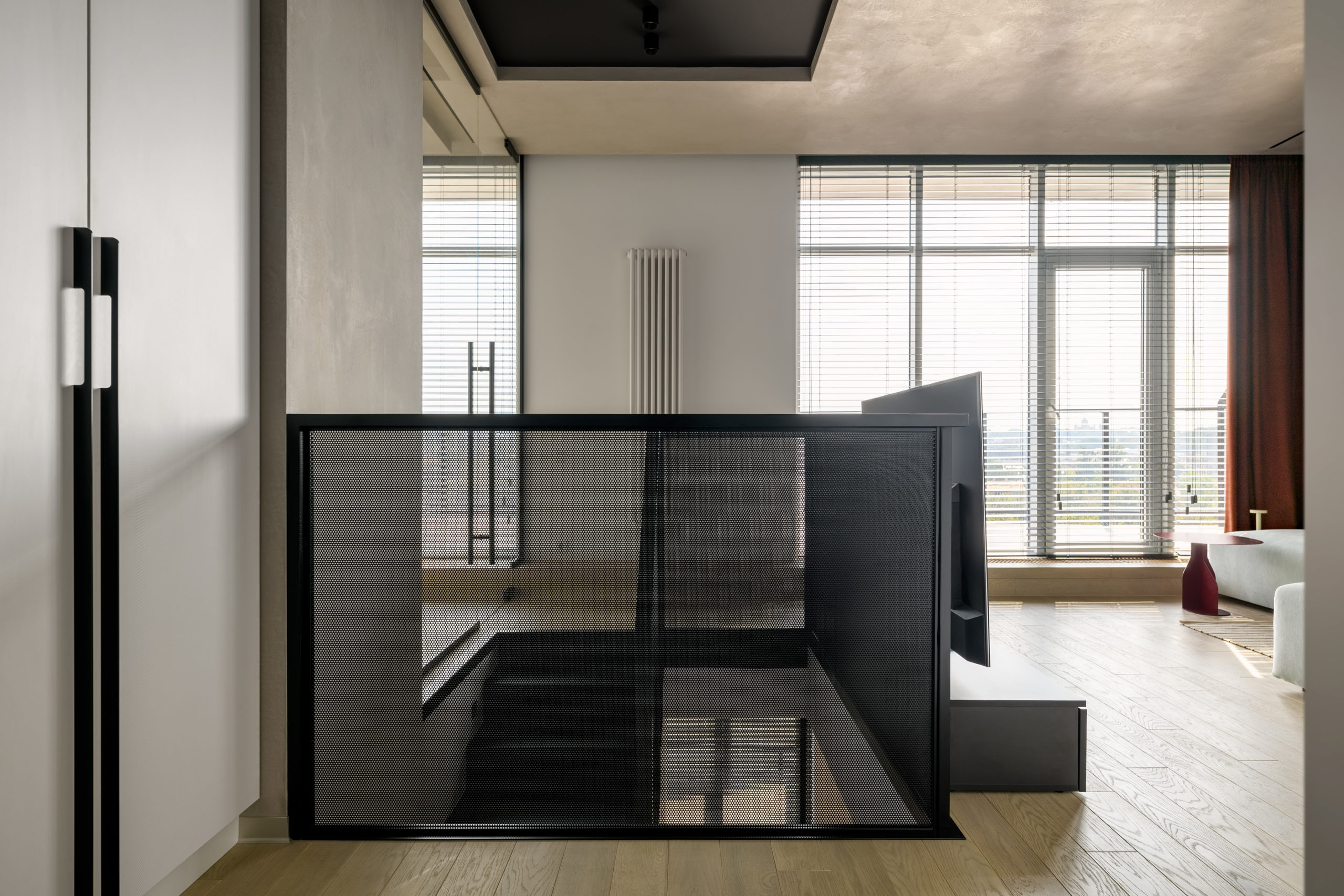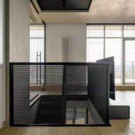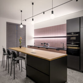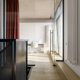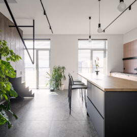 Архітектори студії myks architects представили інтер‘єр пентхаусу у Львові у двох рівнях. З другого рівня відкривається чудова панорама на центральну частину міста та високий замок.