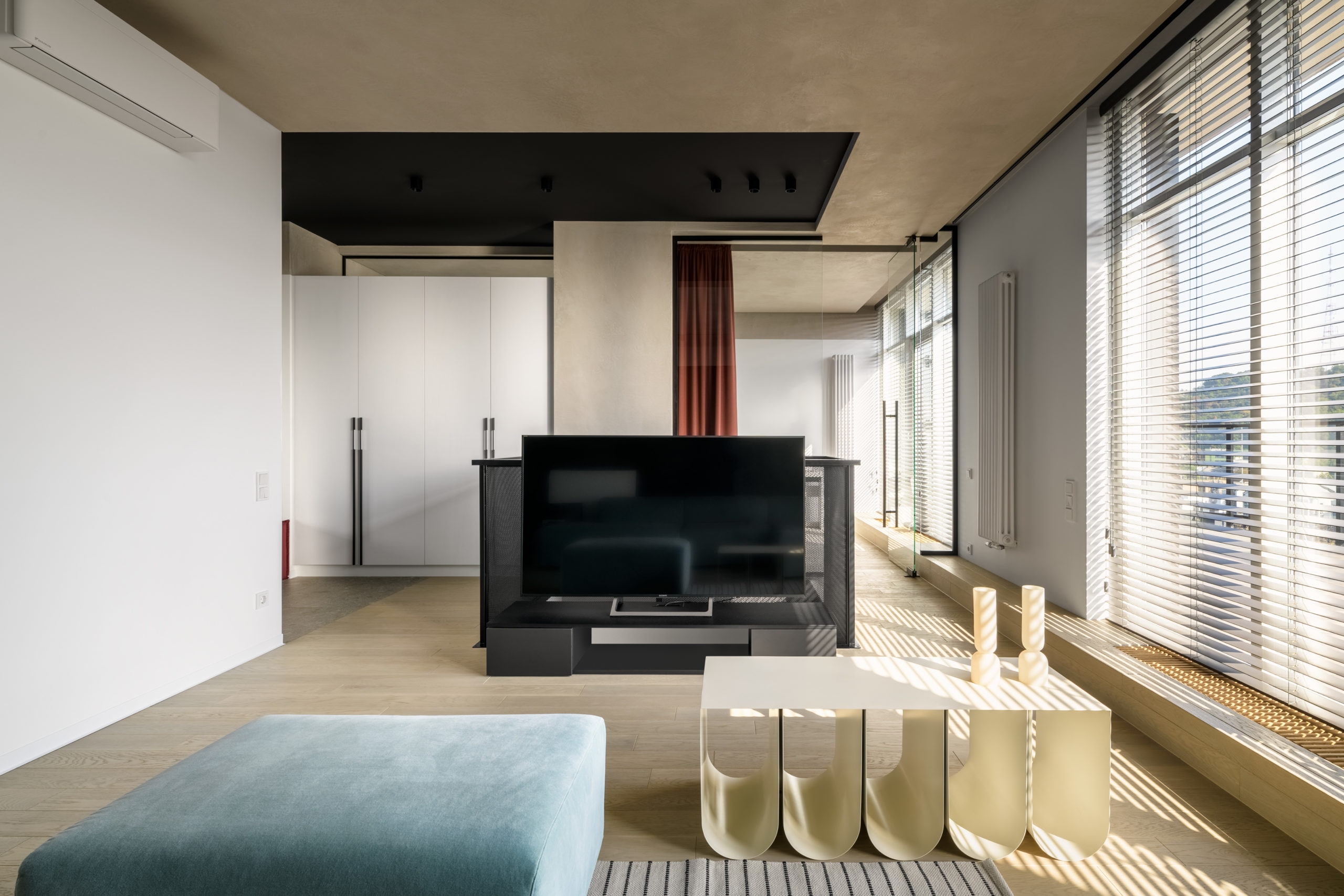 Дане рішення розбило одразу два міфи: окремо стоячі ванни не зручні, їх приймуть двічі за весь час та що ванна створить дуже вологий простір у спальні. В еральності власниця апартаменту щодня користується ванною, а з надлишком вологості справляється вентиляція.