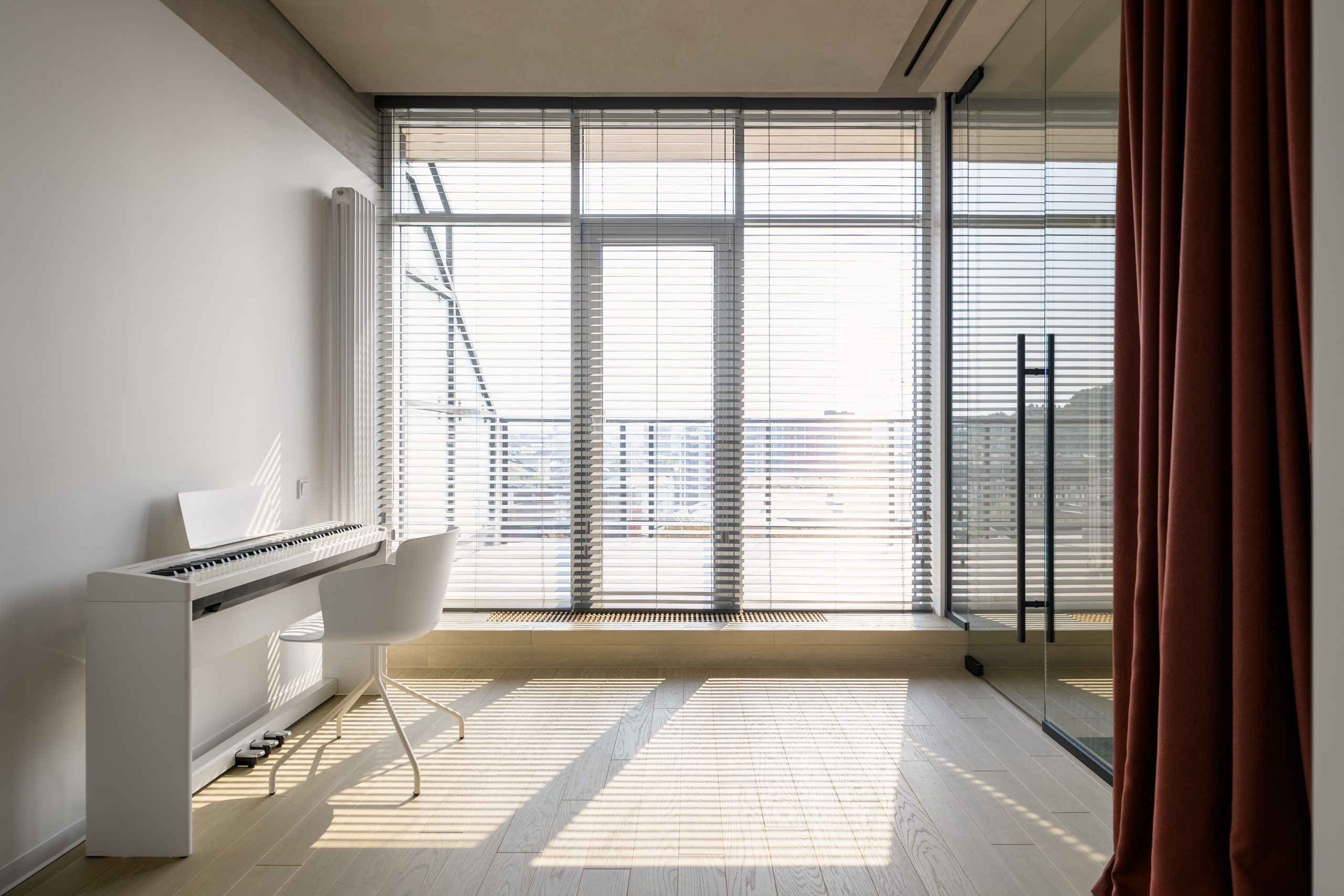 Цікавості проєкту додає, що власники дуже творчі люди і працють переважно вдома. Влітку вони проводять час на терасі у компанії друзів. Це урізноманітнило функціональну структуру квартири.