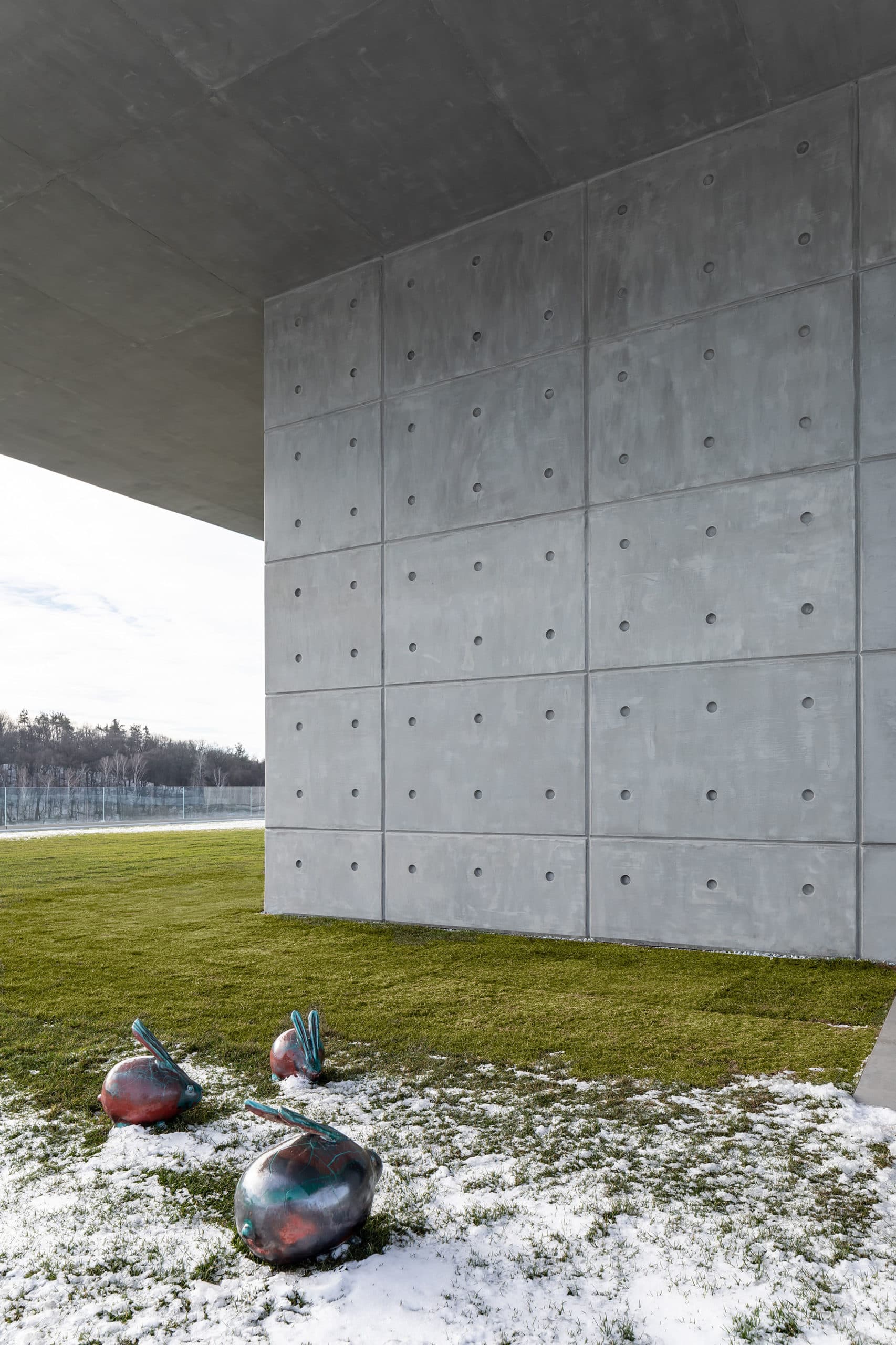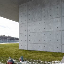 Монолит дома решен в бетоне, что потребовало 20 т материала. Следуя линии экологичности и связи с природой, заказали его у украинского производителя, поскольку логистика бетона, особенно в таких количествах, сложна и к тому же небезопасна для окружающей среды. Вертикальная опора зданий скрыта за мощным забором, поэтому при приближении к Futago испытываешь ощущение, что его правильные геометрические формы парят в воздухе.