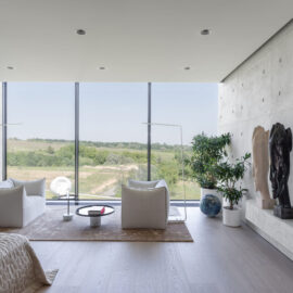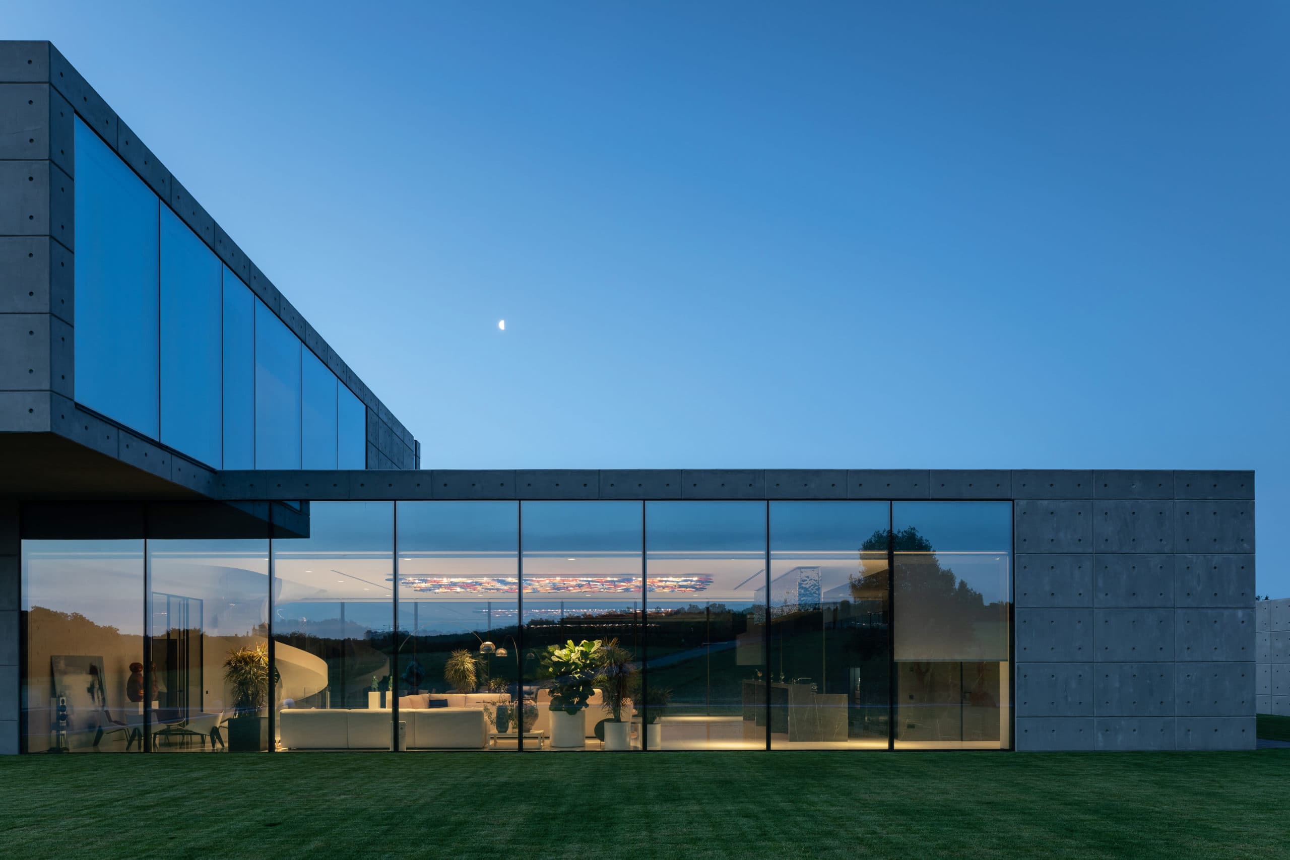 Когда архитекторы студии оказались на участке будущего дома, им стало очевидно, что отправной точкой дизайна будет именно окружающий ландшафт. «Локация побуждала нас сделать все возможное, чтобы вид из окон стал главной изюминкой проекта. Для этого мы досыпали 30 тыс. т грунта и подняли обе части дома на пятиметровую высоту. Так мы избавились от препятствий на линии горизонта, чтобы можно было сполна наслаждаться живописным пейзажем», — делятся авторы. Такое решение вполне отвечает главному принципу ориентальной философии — созерцательности. «Этот дом — продолжение природы и наоборот — антитеза к ней. Futago — чистый лист бумаги, в котором слились тонны бетона, стекла, страсти и силы человеческого духа. Все для того, чтобы любоваться красотой вокруг и учиться видеть красоту внутри», — комментирует основатель студии Sergey Makhno Architects архитектор Сергей Махно.