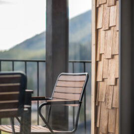 Свою назву проєкт отримав від традиційного карпатського дерев’яного облицювання — ґонту. Ґонт — це дерев’яні дощечки, якими здавна оформлювали будинки в Карпатах, створюючи унікальний місцевий декоративний ефект. Дизайнери обрали цю технологію, адже поважають місцеві традиції та прагнуть гармонійно інтегрувати сучасну архітектурну форму в навколишній ландшафт, підкреслюючи її зв’язок з регіоном.