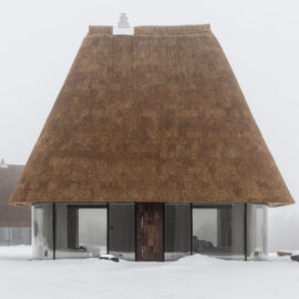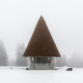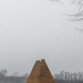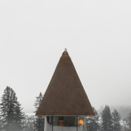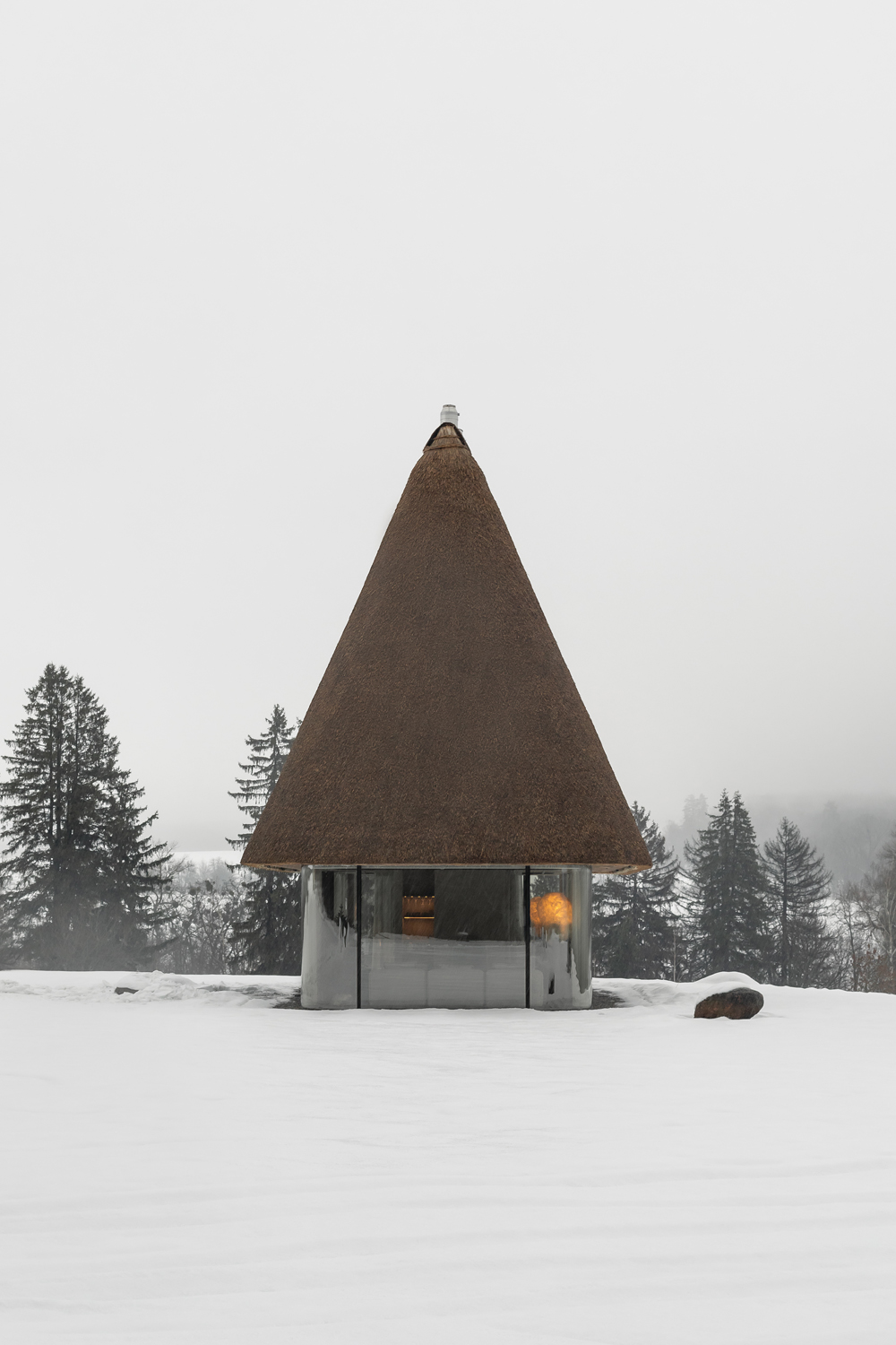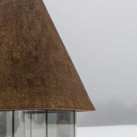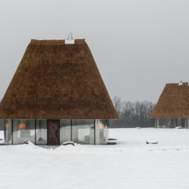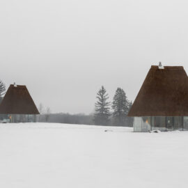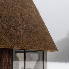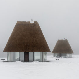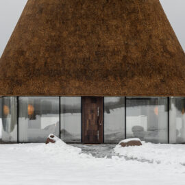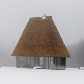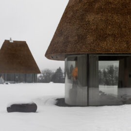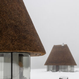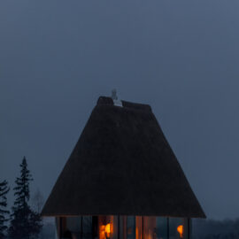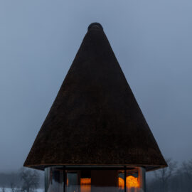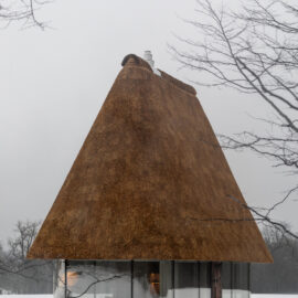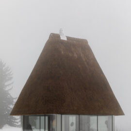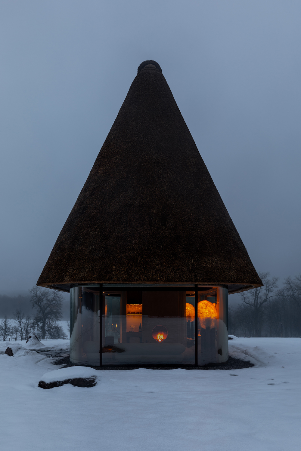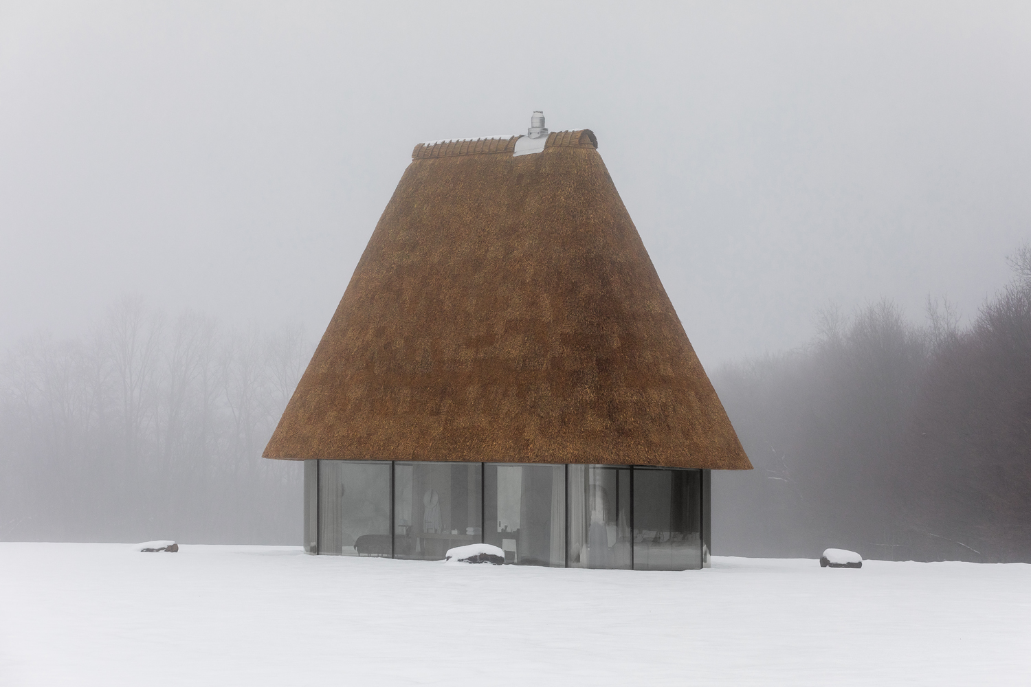 Народна сільська архітектура України історично формувалася навколо виразних та функціональних рішень: очеретяний дах, вибілені вапном стіни, регулярне оновлення тинькування як прояв турботи та прагнення до ошатності. У сучасній інтерпретації YOD Group бажання чистоти й світла трансформується у повністю прозорі фасади зі скла, а гіперболізований за пропорціями дах стає ключовим акцентом архітектури. Його форма створюючи виразний та впізнаваний силует, що водночас нагадує традиційну високу шапку «кучму» та велетенський гриб.