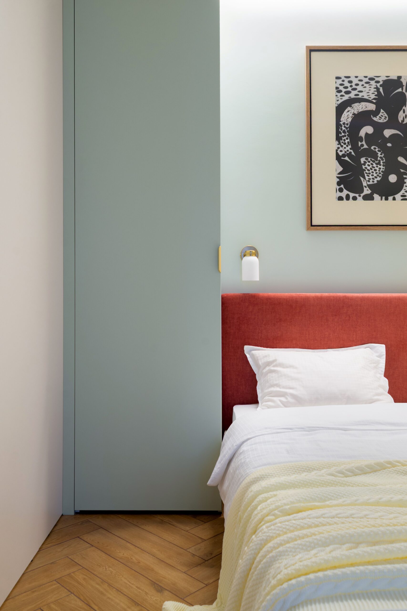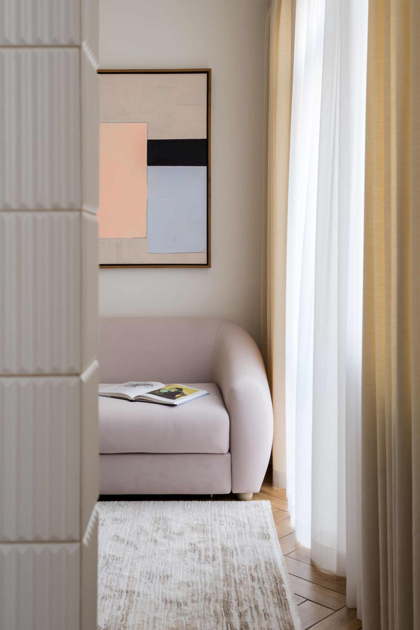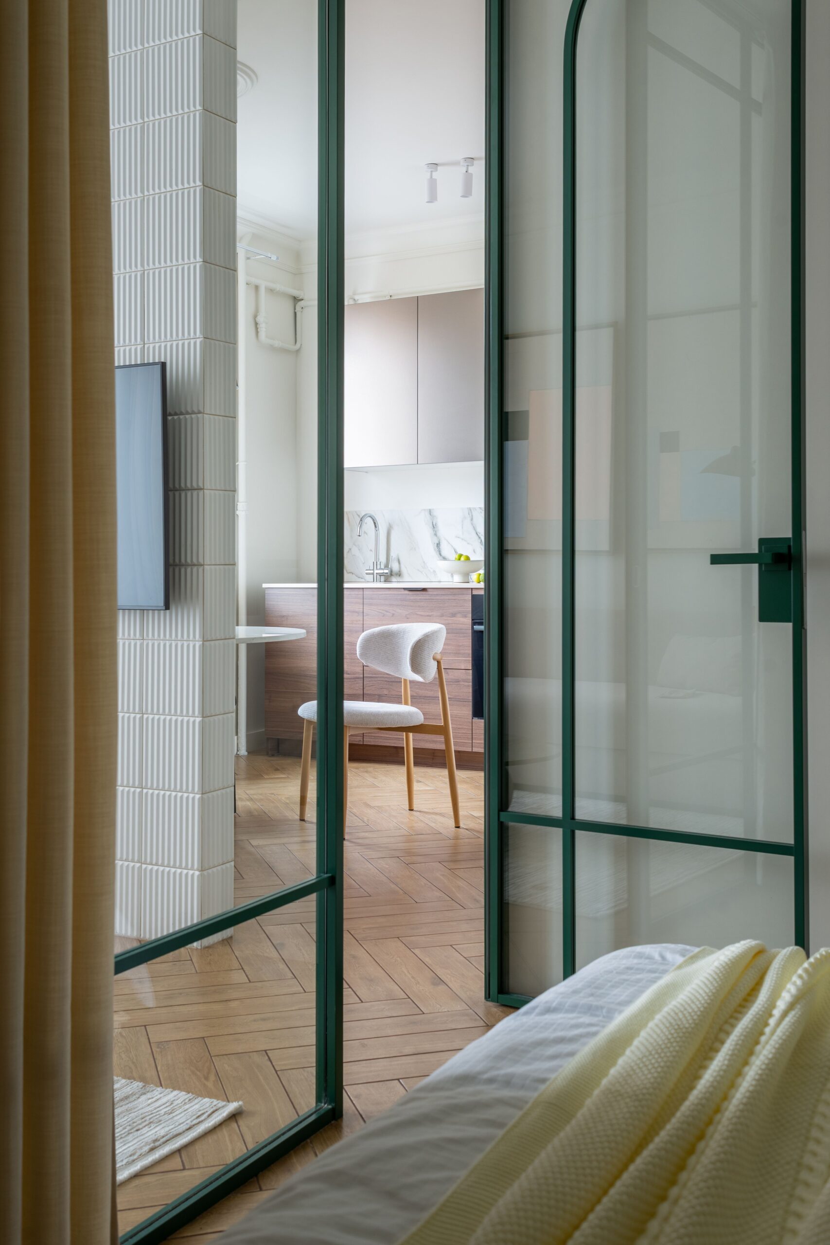 Задача була нетиповою для орендного ринку: відійти від нейтральних рішень і створити виразний, естетичний інтер’єр з використанням кольору — простір, що виділяється, запам’ятовується та формує цінність не лише квадратними метрами, а й атмосферою.