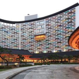 «Комплекс Baeksangwon – результат попытки привнести элементы архитектуры раннесредневекового корейского государства Пэкче в здание 21-го века», – заявили архитекторы Ким Син-Хой и Кан Вон-Фил из бюро KYWC Architects после реализации проекта в 2010 году. Объект представляет собой масштабный кондоминиум на 300 апартаментов, расположенный в южнокорейской провинции Чхунчхон-Намдо.