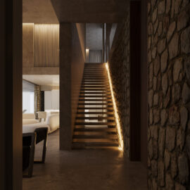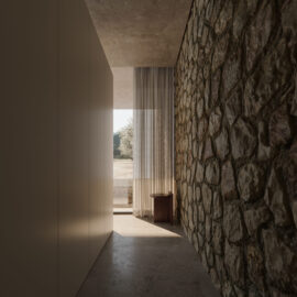 Португалія, скелястий океанічний схил — саме тут народився цей архітектурний проєкт. Будинок під назвою Stone House, делікатно інтегрований у природний рельєф, відкриває панорамний вид на Атлантику та зберігає первинну гармонію ландшафту. За словами архітекторів, основою концепції стали тиша, простір і відчуття єдності з природою.