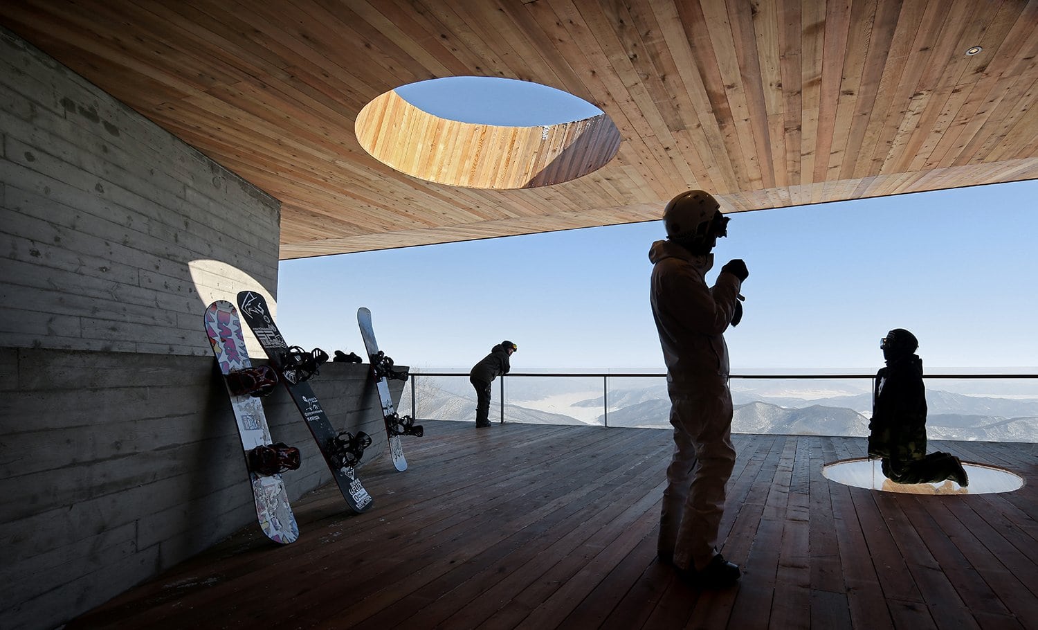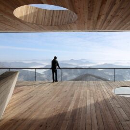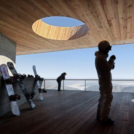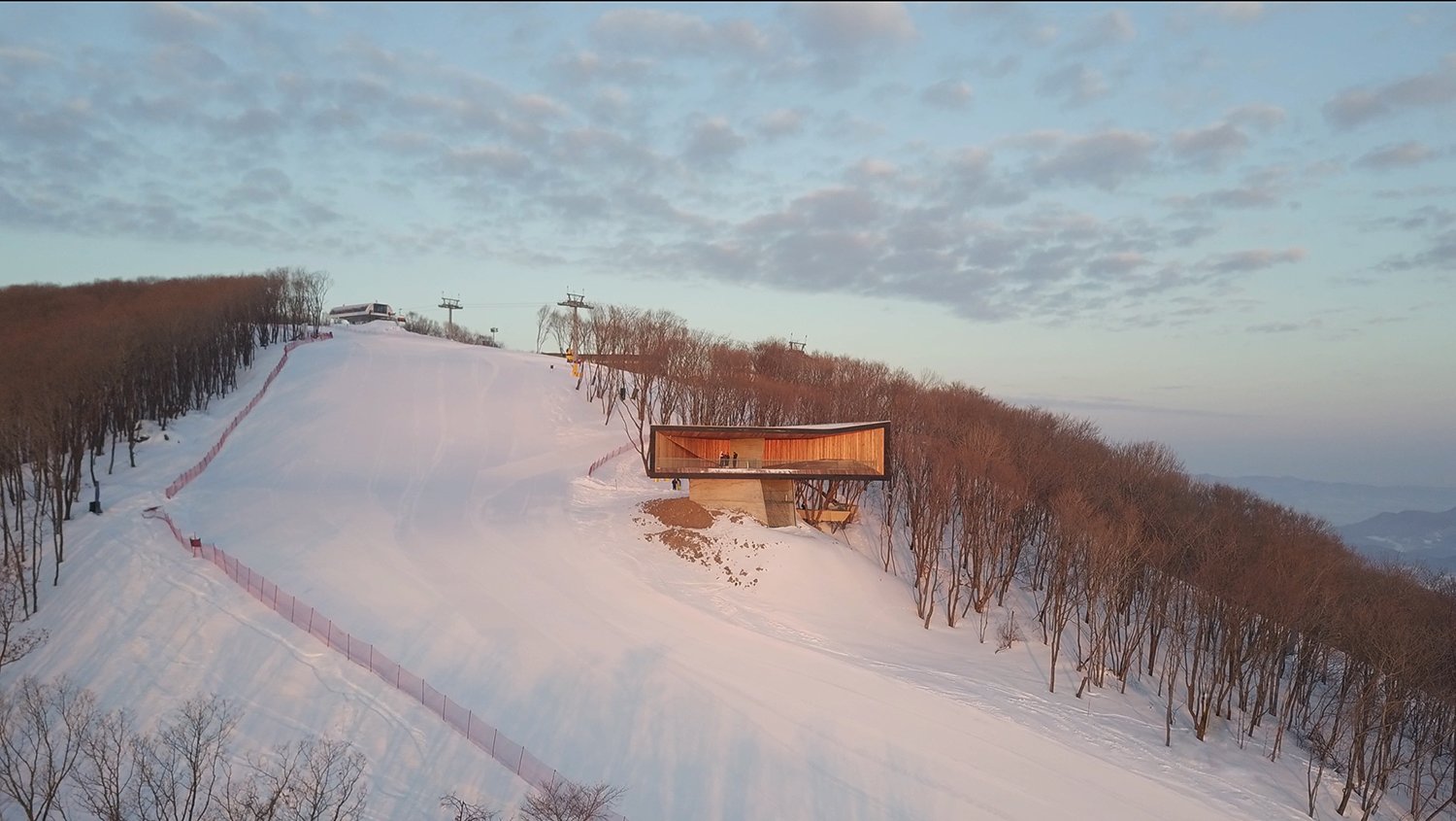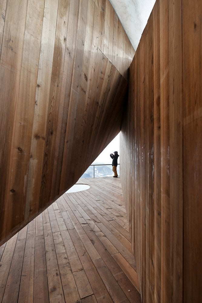 Горнолыжная база в китайском курортном городке Фэнмань, расположенная в провинции Гирин, пополнилась новой смотровой площадкой. Как выразились архитекторы META-Project, спроектировавшие сооружение, «отдыхающие смогут не только передохнуть посреди спуска, но и насладится прекрасными пейзажами заснеженных гор, покрытых лиственным лесом».
