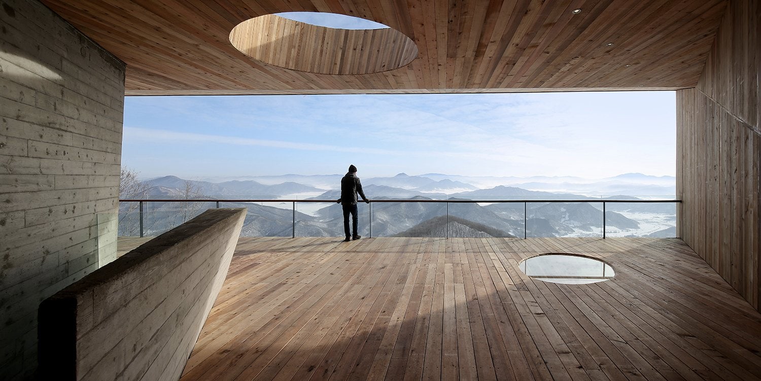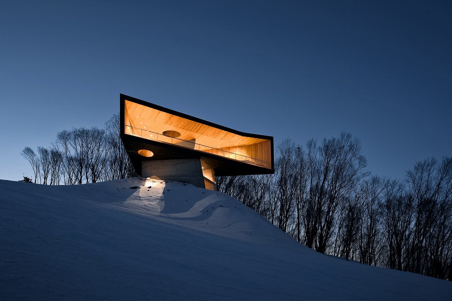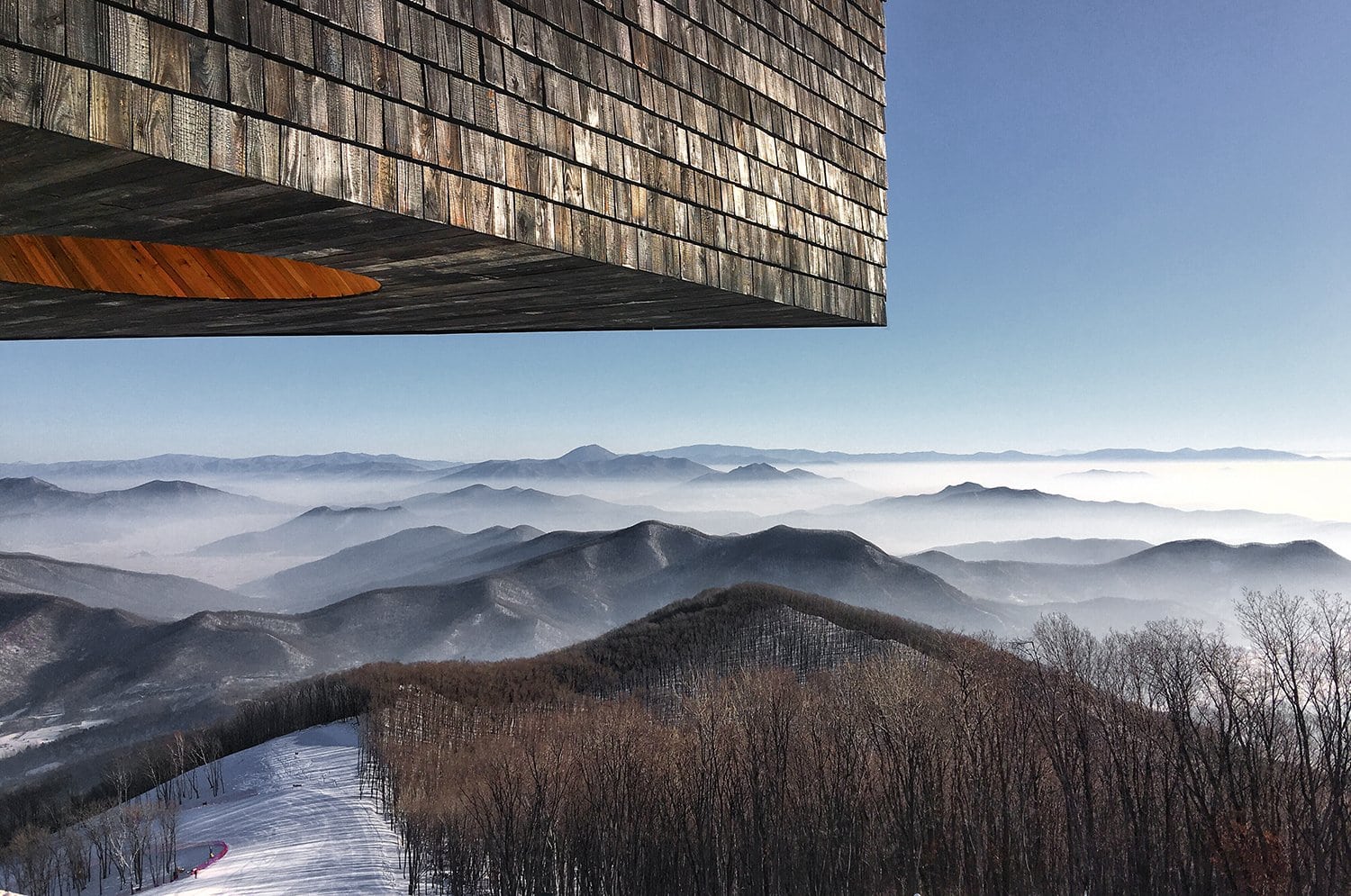 Горнолыжная база в китайском курортном городке Фэнмань, расположенная в провинции Гирин, пополнилась новой смотровой площадкой. Как выразились архитекторы META-Project, спроектировавшие сооружение, «отдыхающие смогут не только передохнуть посреди спуска, но и насладится прекрасными пейзажами заснеженных гор, покрытых лиственным лесом».