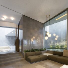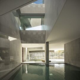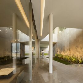 Свободное пространство, не обремененное функциональными нагрузками, – это роскошь, сегодня, пожалуй, доступная лишь миллиардерам. В Nirvana Home – пустые пространства и многоуровневые внутренние сады и дворики – создают серию помещений, которые члены семьи используют для прогулок. Сквозняки, вентилирующие эти галереи, в жарком климате Кувейта – один из способов создавать комфортную для человека среду. Вместе с тем, облицованные светлым прохладным мрамором пространства с четкой геометрией – идеальное место для медитации и пути к достижению нирваны. Эта концептуальная особенность и дала имя особняку.
