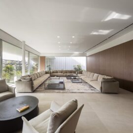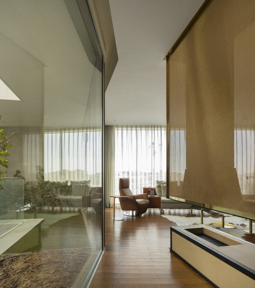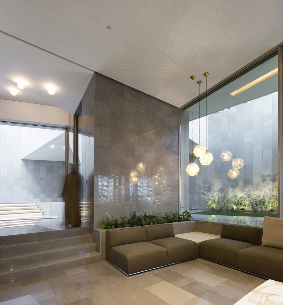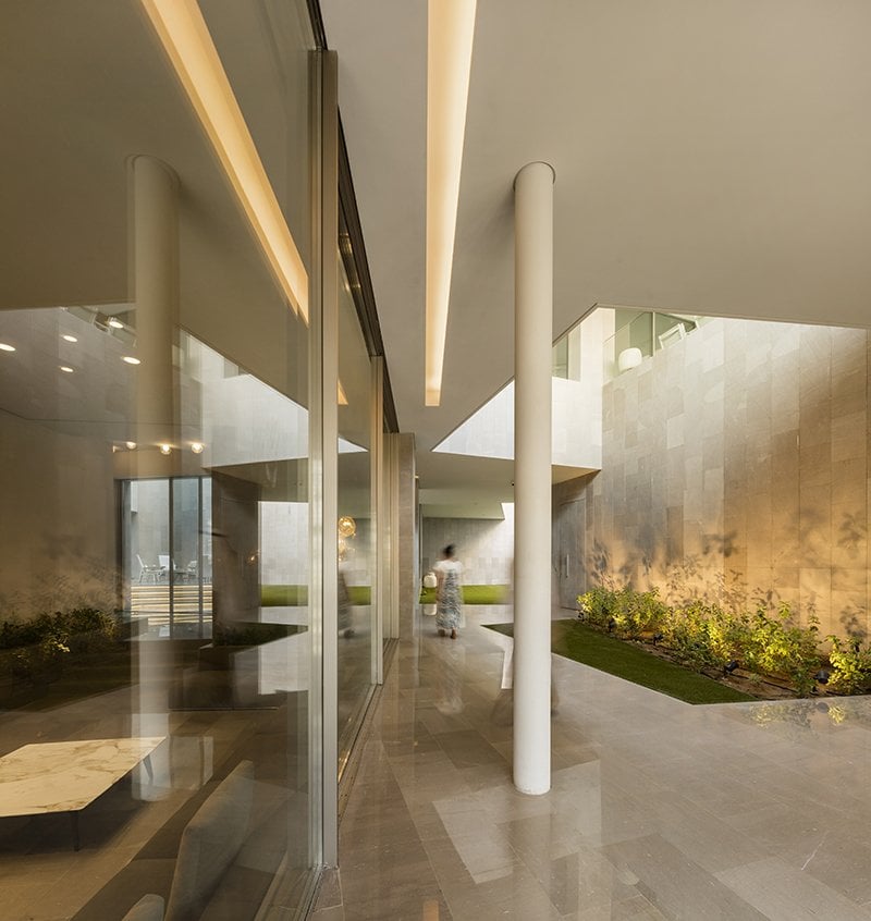 Вот как обосновали масштабность проекта в AGi Architects: «Этот дом является отражением местной культуры. Контакт с местностью на уровне земли обеспечивает первый общественный этаж, посвященный социализации, собранию семьи и друзей. С этой целью пространства были спроектированы изолированными от окружающей среды, но открытыми друг другу, соединяясь через цепочку внутренних дворов».