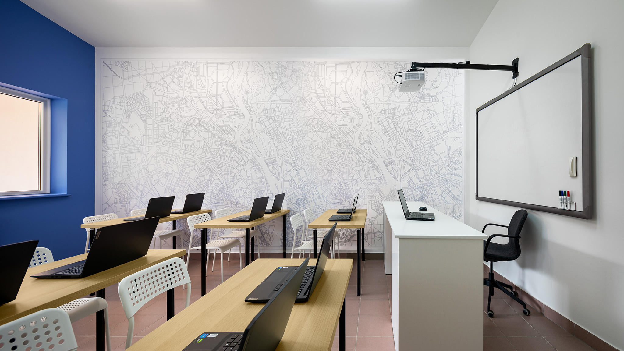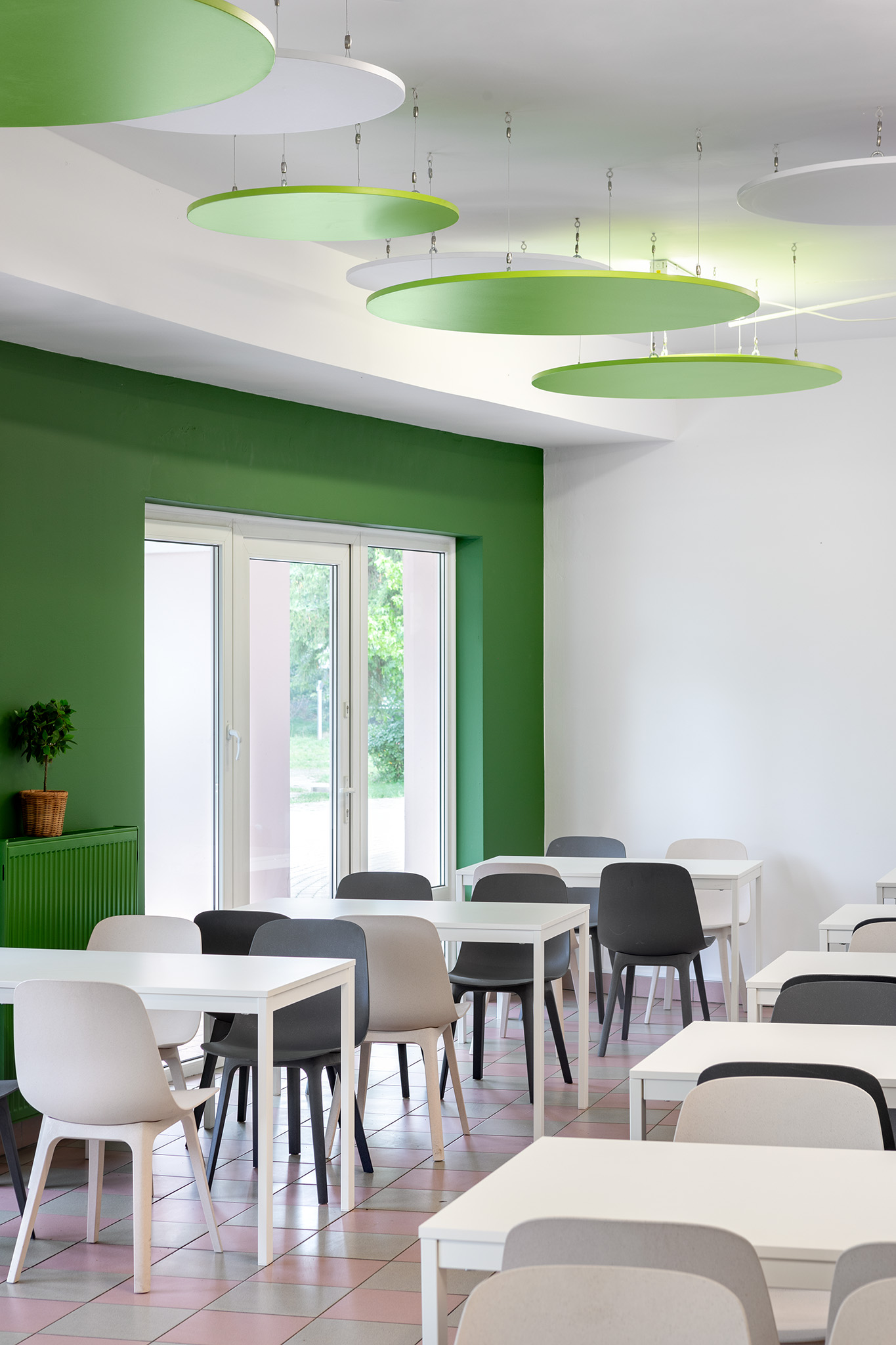 Команда дизайнерів і архітекторів зробила редизайн уже існуючого приміщення і попри стислі терміни та рамки бюджету, створила цікавий і багатогранний простір для українських школярів у Польщі. Який вигляд має реалізований простір, можна побачити на фото від Івана Авдєєнка.