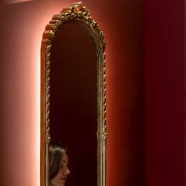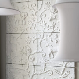 Between the Walls відомі своєю співпрацею з художниками, і для проєкту Mislad команда запросила Анастасію Лелюк. Її поетичний підхід до декоративного мистецтва та чутливість до символів дозволили надати нове життя історичним елементам інтер’єру, зберігши глибину та наративність простору.