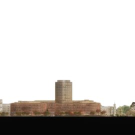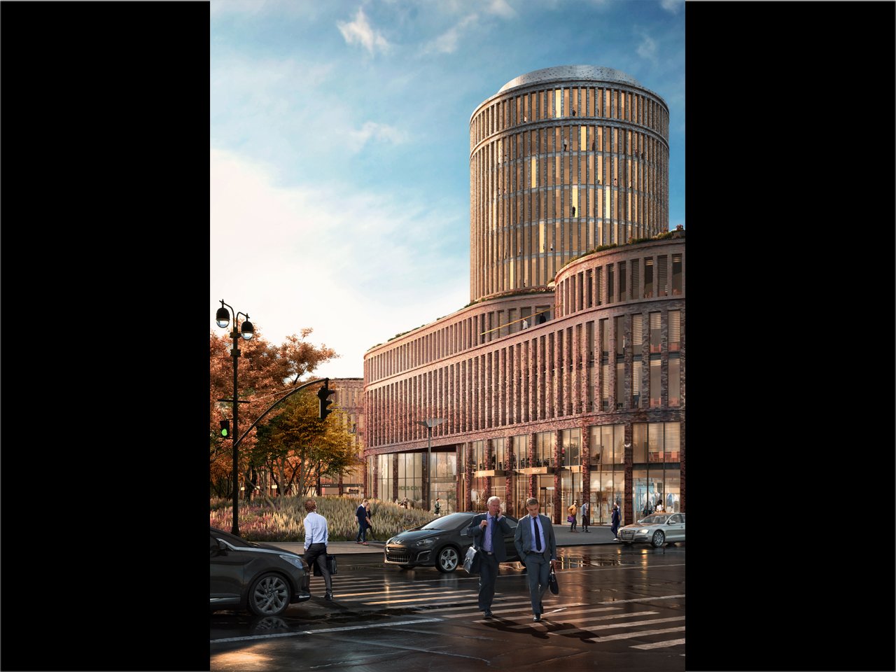 С верхних этажей главной башни высотой 55 метров, в которой предусмотрены офисные пространства, будет открываться панорама города, а также вид на «зеленые» кровли корпусов комплекса. Разработкой проекта озеленения центра занялась студия Lola Landscape Architects из Роттердама – дизайнеры предусмотрели организацию на крышах зеленых насаждений, а также небольшую клумбу во внутреннем дворе офис-центра.