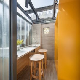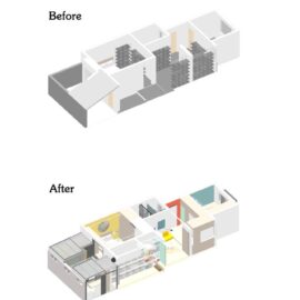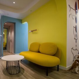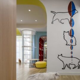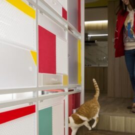 Полуподвальная квартира площадью 48 квадратных метров в старом шанхайском особняке – это дом женщины, которая живет с сыном, и настолько любит животных, что приютила 40 кошек и 2 собак. Кошачья популяция увеличивалась постепенно, но с каждым новым питомцем сокращалось жизненное пространство для людей и ухудшались условия проживания. Хозяйка обратилась к архитекторам местного бюро Shanghai Huadu architecture & Urban planning с просьбой перепланировать апартаменты так, чтобы создать пространство для комфортного сосуществования людей и животных.