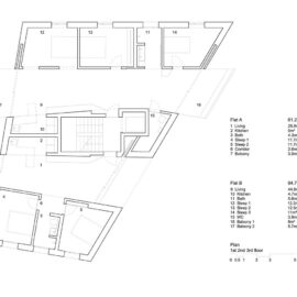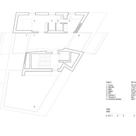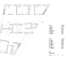 В доме – четыре двуспаленных квартиры площадью по 60 квадратных метра и пять трехспаленных, но тоже вполне скромных по метражу, всего по 95 квадратов. На уровне улицы бетонный блок пронзают насквозь два проема, которые могут использоваться как общественное пространство. В распоряжении жильцов – большая открытая терраса на верхнем этаже, которую можно использовать для проведения вечеринок.