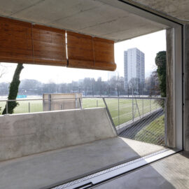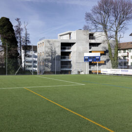 Дом на Langgrütstrasse 107 расположен в зеленом поясе вокруг исторического центра Цюриха. Район Альбисриден застраивался в середине XX века по типичному для модернизма мастер-плану – линейно расположенные малоэтажные дома с огромными зелеными пространствами между ними. Новый городской план допускает уплотнение района, с оговоркой на соблюдение ряда условий. Новые здания должны быть компактными, соответствовать общему стилю и быть не выше окружающих домов, чтобы не перекрывать свет соседям. А сами квартиры должны соответствовать швейцарским высоким критериям качества – быть просторными и функциональными.