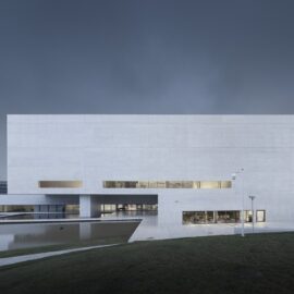Единственный декор белых лаконичных фасадов, отделанных бетонными плитами – «резкие тени при солнечной погоде», как выразились архитекторы. Именно они создадут ту самую «глубину и динамику», присущую полотнам де Кирико. Интерьер здания также прост – его стены отделаны тем же материалом, что и фасад музея. Архитекторы самостоятельно разработали особую смесь для отделочных плит. «Среди множества просмотренных образцов мы не нашли того, что нам было нужно, и сами создали плиты необходимого оттенка и определенной фактуры» – рассказали в бюро Regional Studio. Дизайнеры осознанно выбрали белый цвет для стен, поскольку на практике именно он является идеальным фоном, не отвлекающим внимание от созерцания предметов искусства.