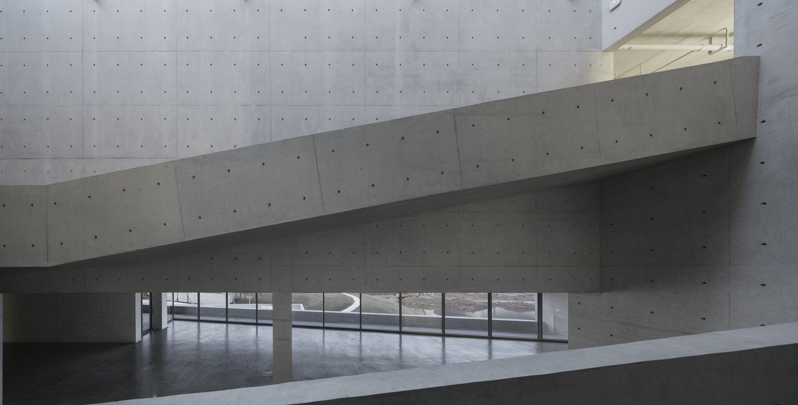 «Мы пытались создать композицию так, чтобы она эмоционально и психологически воздействовала на посетителей», – комментируют дизайнеры. Метафизическая живопись итальянца, по мнению авторов проекта, излучает спокойствие – его полотна изображают обыденные предметы и здания в резкой перспективе с визуальной глубиной пространства. Аналогичный эффект они стремились воссоздать в бетоне.