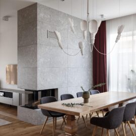 Главными элементами декора в проекте STEP-UP House стали источники света — здесь использованы светильники брендов Karman, Designheure, Lucifer Lighting, Aquaform, Formagenda. Еще одним важным акцентом в интерьере можно назвать камин с трехсторонней ориентацией, который установили в гостиной.