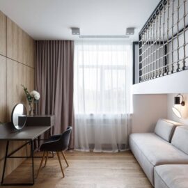 История создания STEP-UP House началась с того, что молодая семья из Днепра обратилась в SVOYA studio с просьбой выполнить дизайн двух совмещенных квартир. Но работа над проектом была приостановлена, поскольку клиенты захотели большего. В итоге дизайнеры помогли подобрать заказчикам собственный дом в пригороде и оформили для них уютный интерьер.