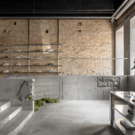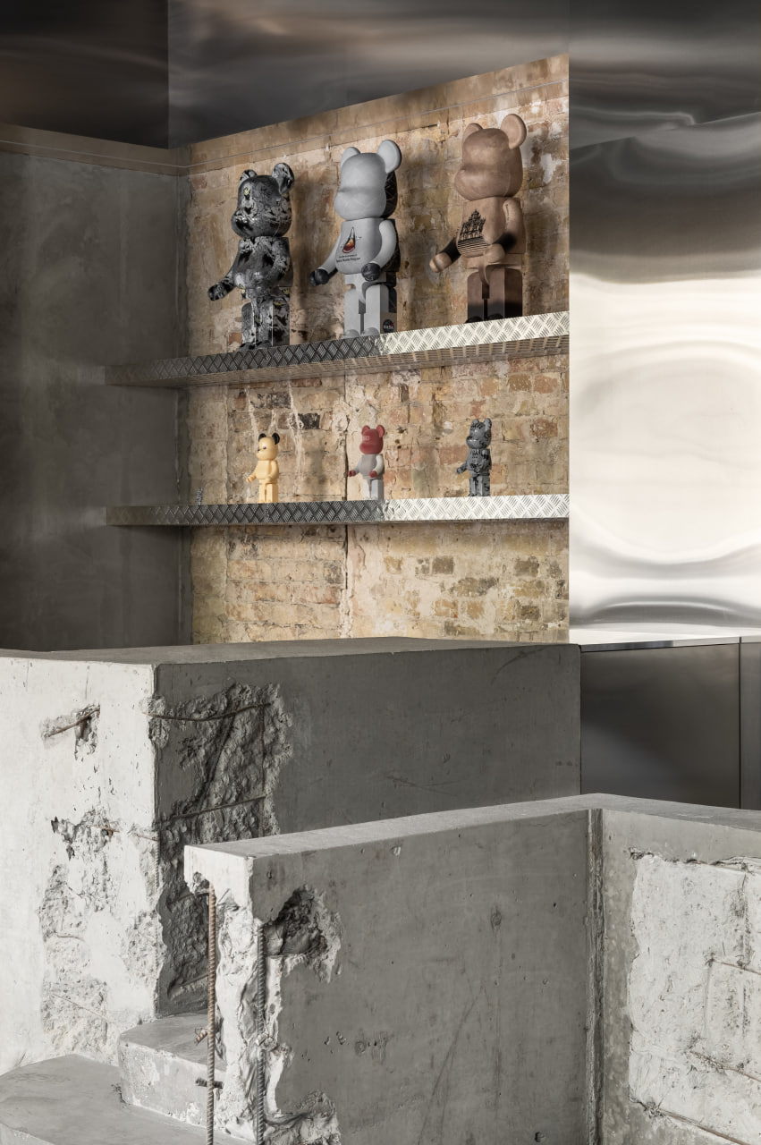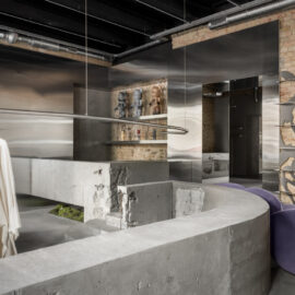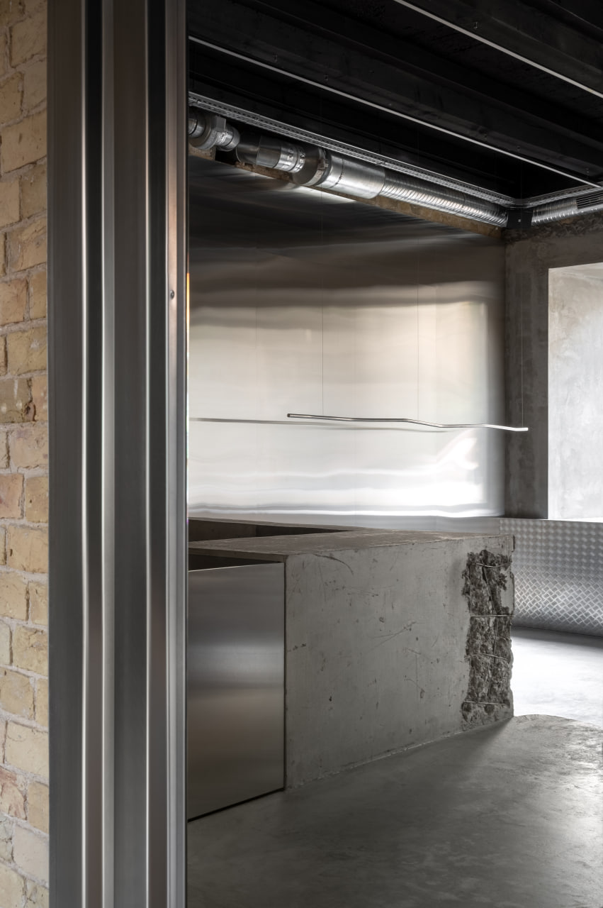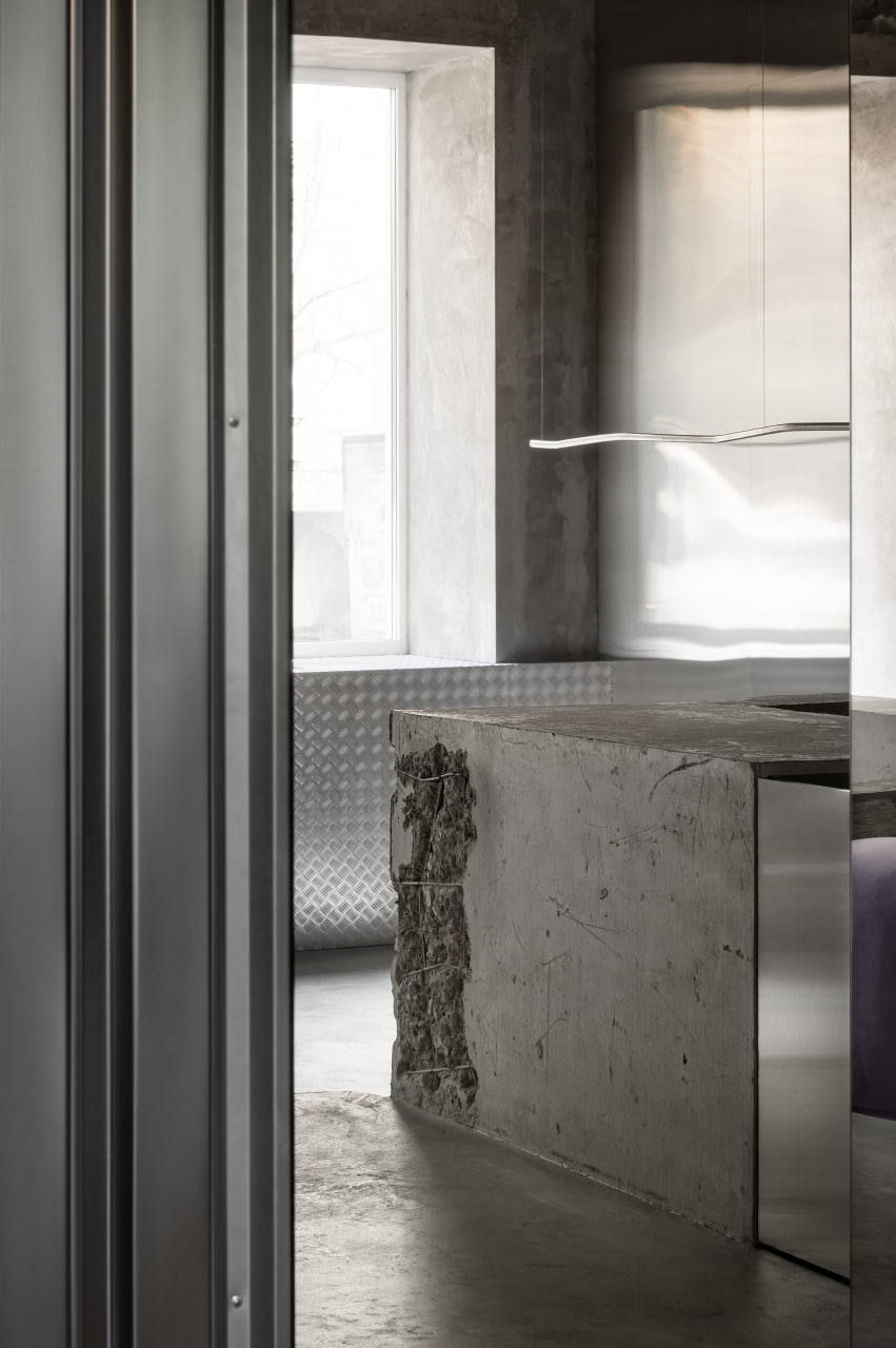 «У клієнтів був запит – створити атмосферу занедбаної промзони з надщербленим бетоном, оголеною арматурою та рослинами, що відвойовують життєвий простір у міста. Інтер’єр став уособленням брутального міста, що живе за власними законами з мінімальним втручанням людини», – розповідає архітекторка Анастасія Темпінська.
