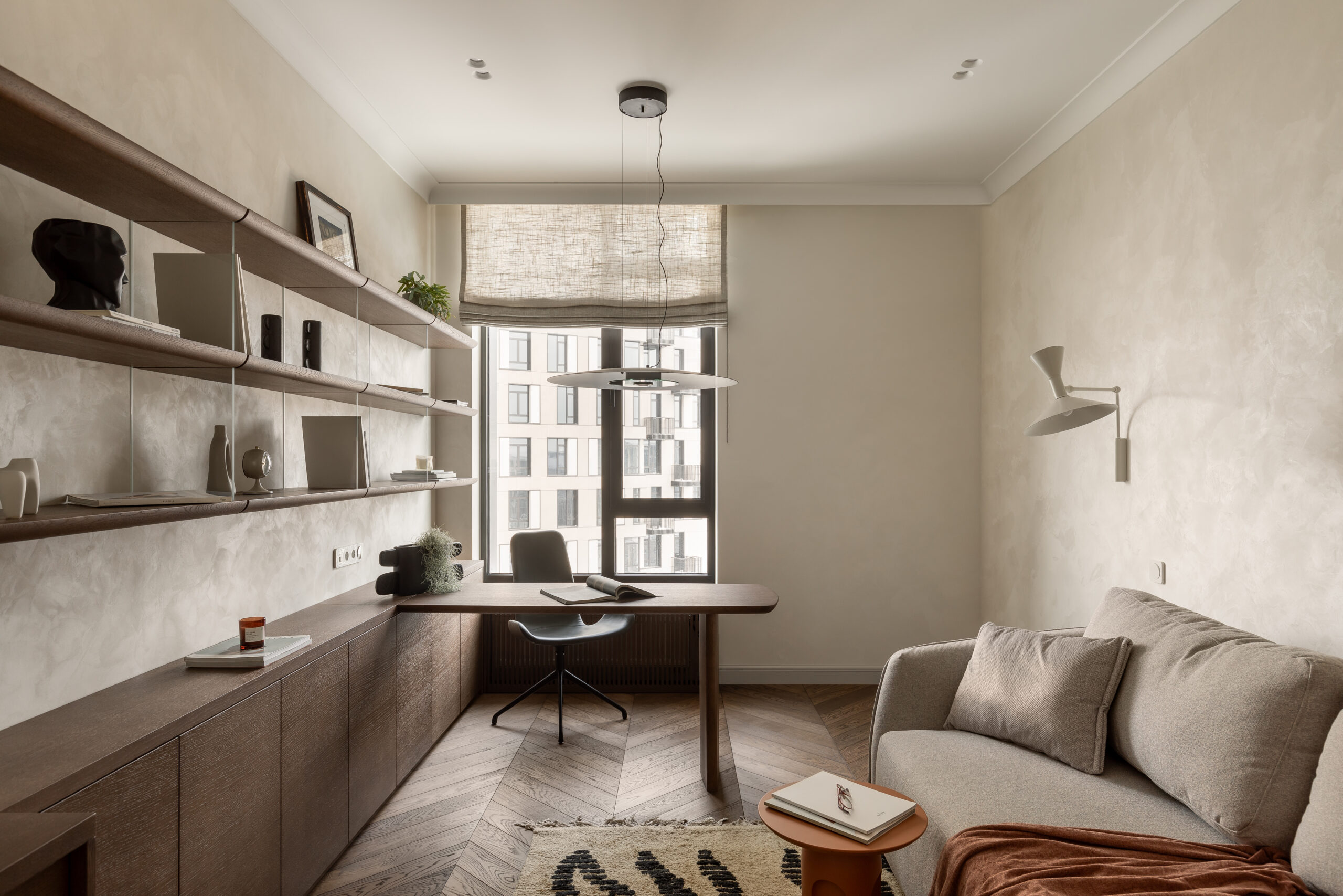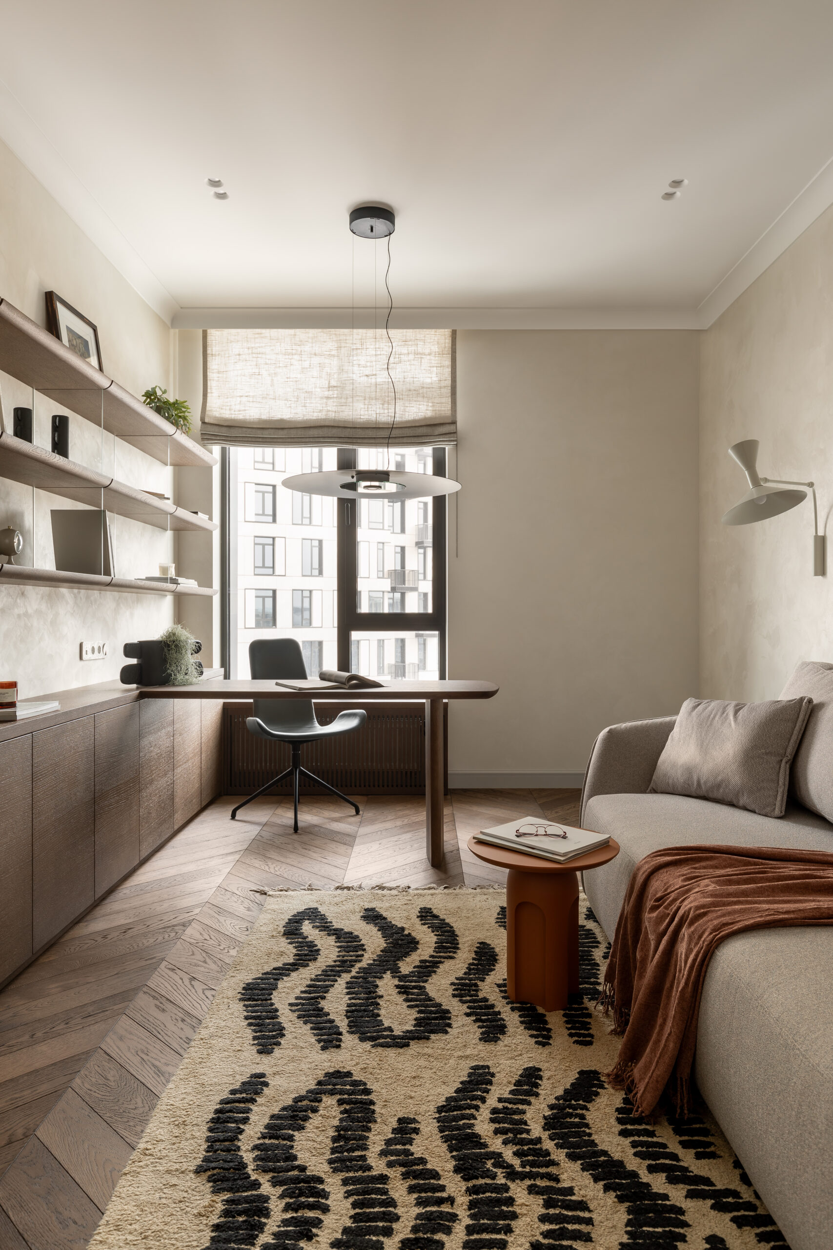 Окремим сценарієм життя став кабінет. Можливість працювати з дому сьогодні для мене – одна з форм сучасної розкоші. Це простір концентрації, тиші та фокусу, який не конфліктує з житловою частиною, а доповнює її.