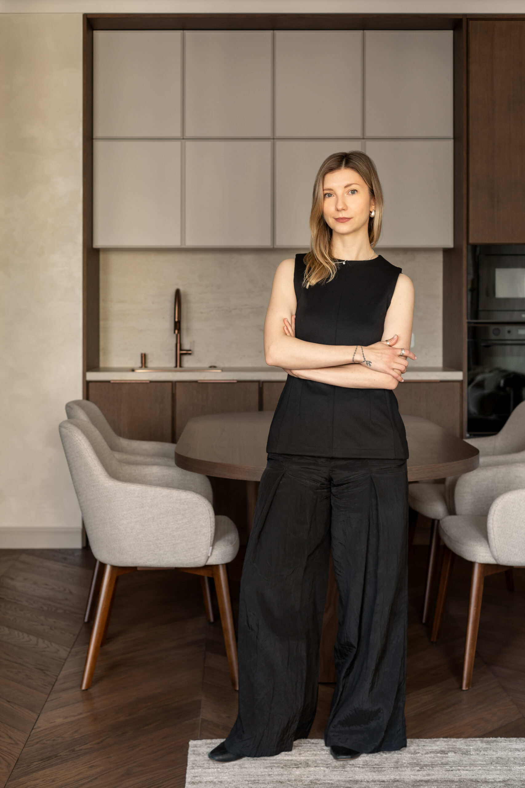 «Я думаю про простір як про середовище, що формує наш стан, впливає на ритм життя та відчуття тіла в ньому. Тому в цьому проєкті ключовими стали не лише композиція й пропорції, а тактильність матеріалів, акустика, світло й те, як простір «відгукується» на присутність людини», – каже дизайнерка.