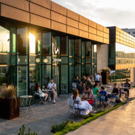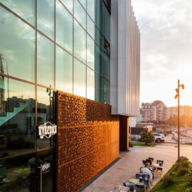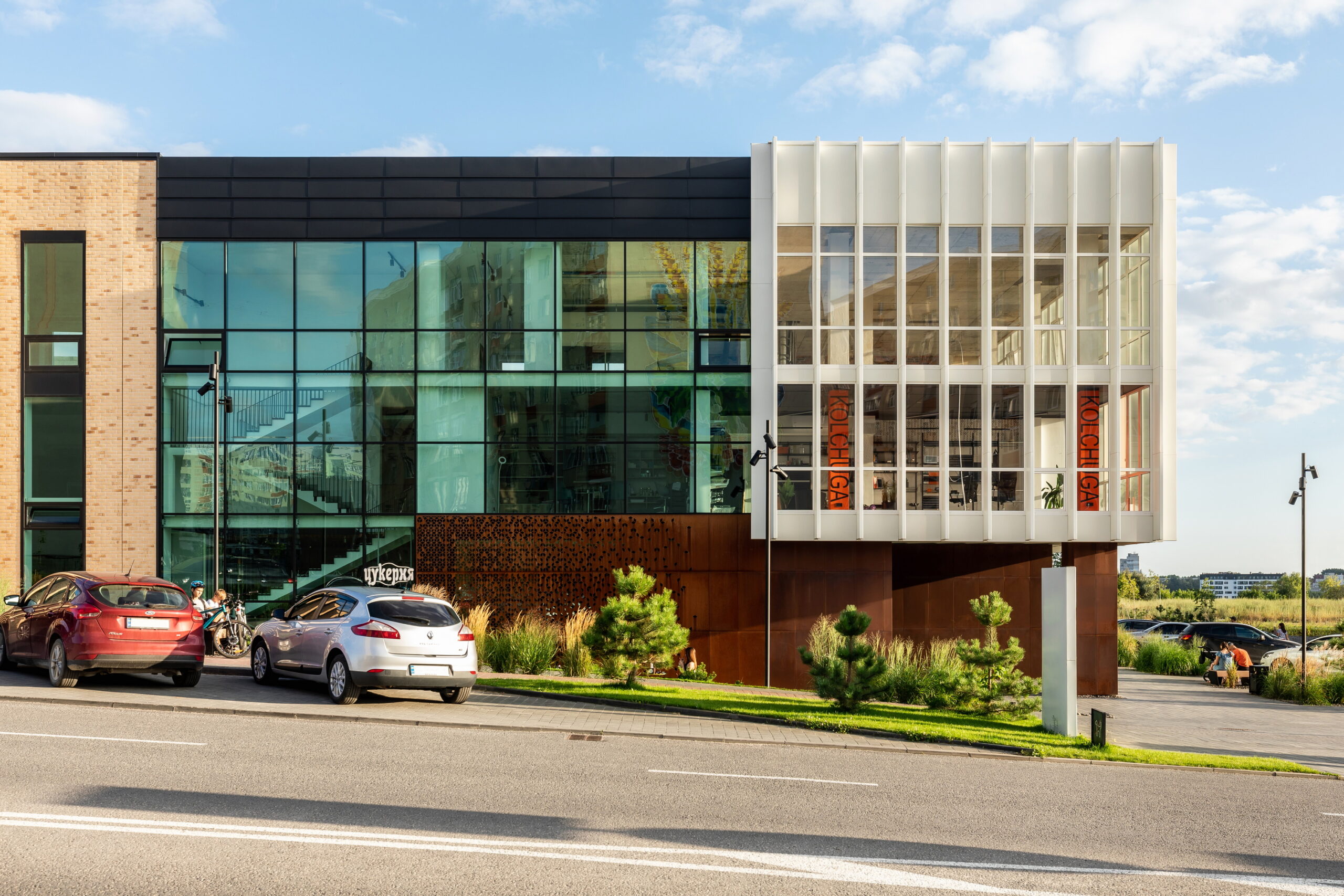 Також на фасаді застосовано кортенову сталь, яка своїм насиченим кольором іржі додає акцентних плям. Об’єкт еволюціонував від ручного скетчу до живого твору архітектури протягом кількох років, а зараз продовжує жити й розвиватися щодня!