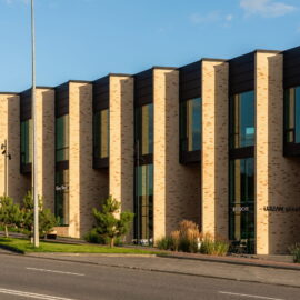 Відомо, що місто славиться своєю любов’ю до керамічної цегли. Фасади із цегляним оздобленням у місті трапляються повсюдно і в об’єктах різних епох. Тому першим бажанням творців було знайти місце для неординарного фасадного рішення із застосуванням фасадної цегли. Також цікавою особливістю стало розташування першої будівлі на розі вулиць, тому кутова триповерхова частина повинна була привертати увагу на контрасті з багатоповерхівкою на сусідній ділянці. Для цього було прийняте рішення виконати цю частину з вертикальними фасадними ребрами, які створюють цікаву гру світлотіні й привертають увагу перехожого з далекої відстані.
