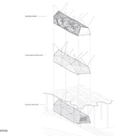 Строение, названное Suspended Forest («Висящий лес»), представляет собой вытянутую коконоподобную конструкцию, подвешенную к бетонному навесу. Для достижения большей прочности конструкция сделана треугольников.