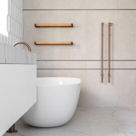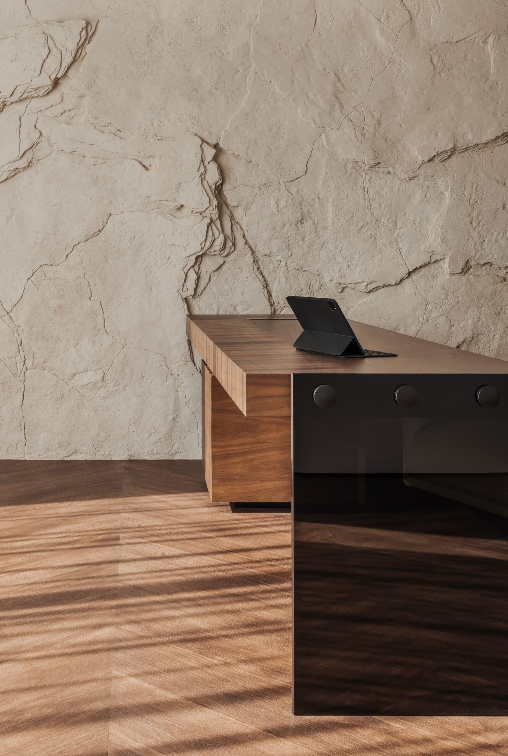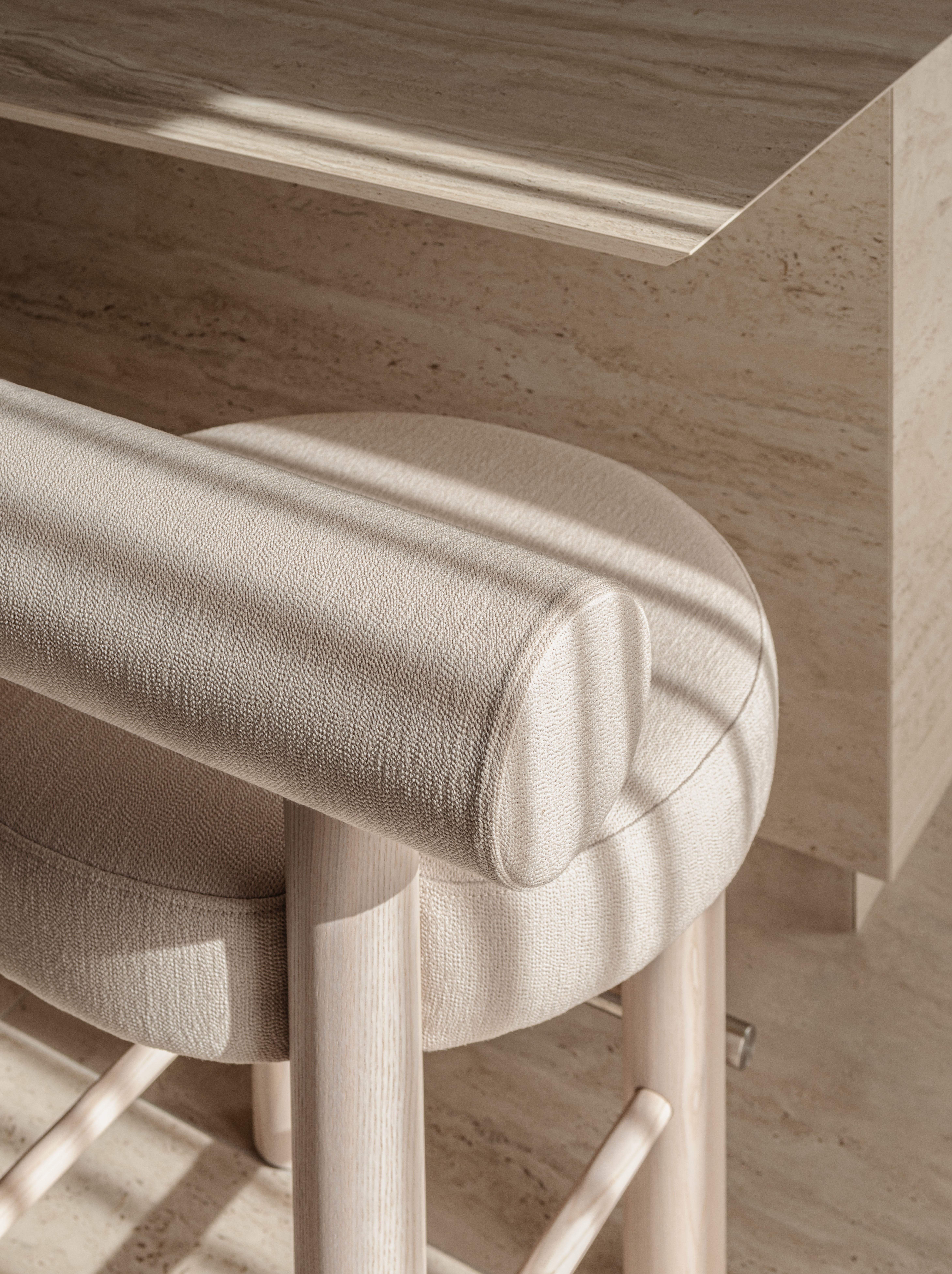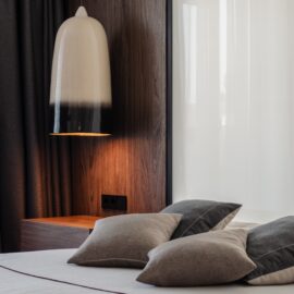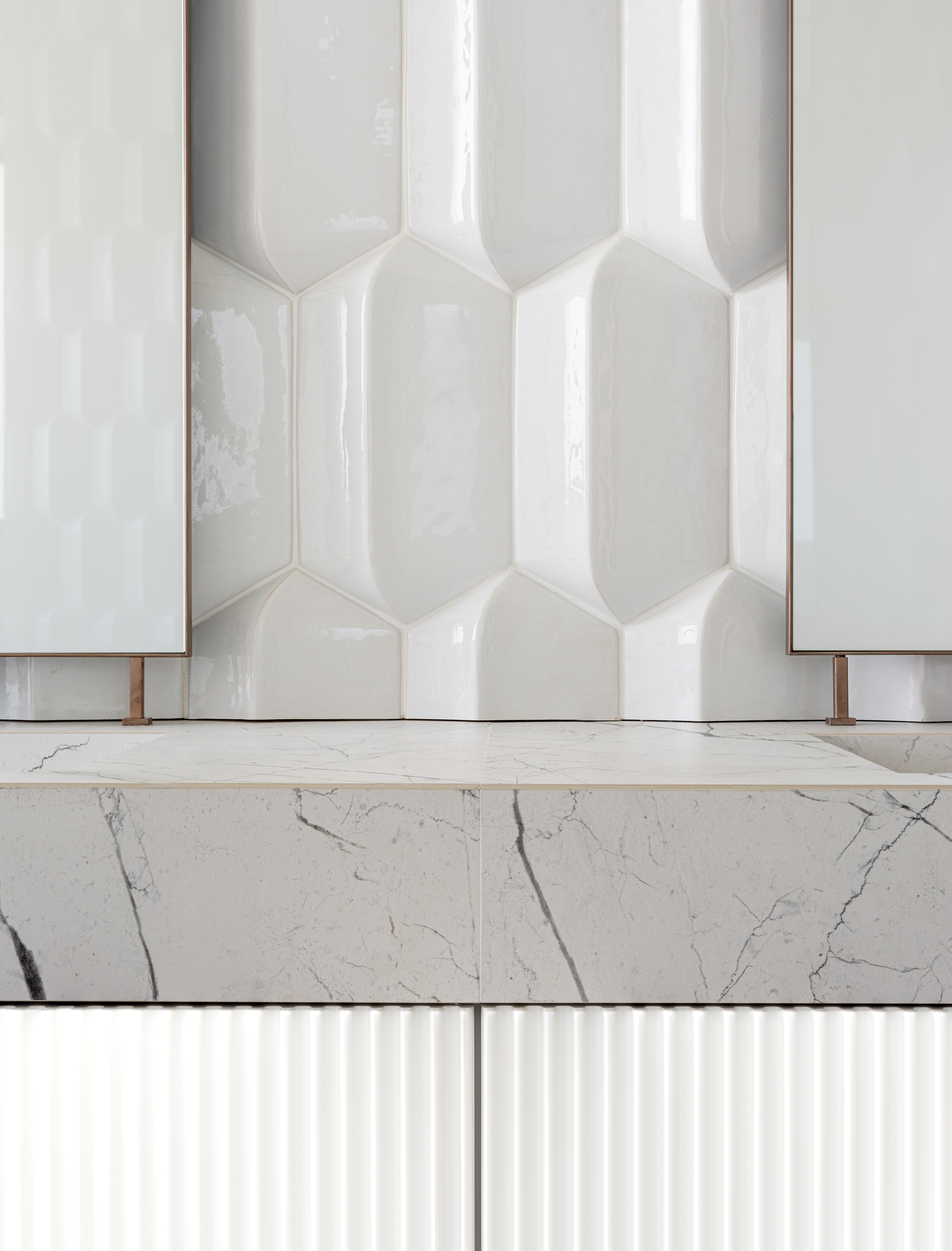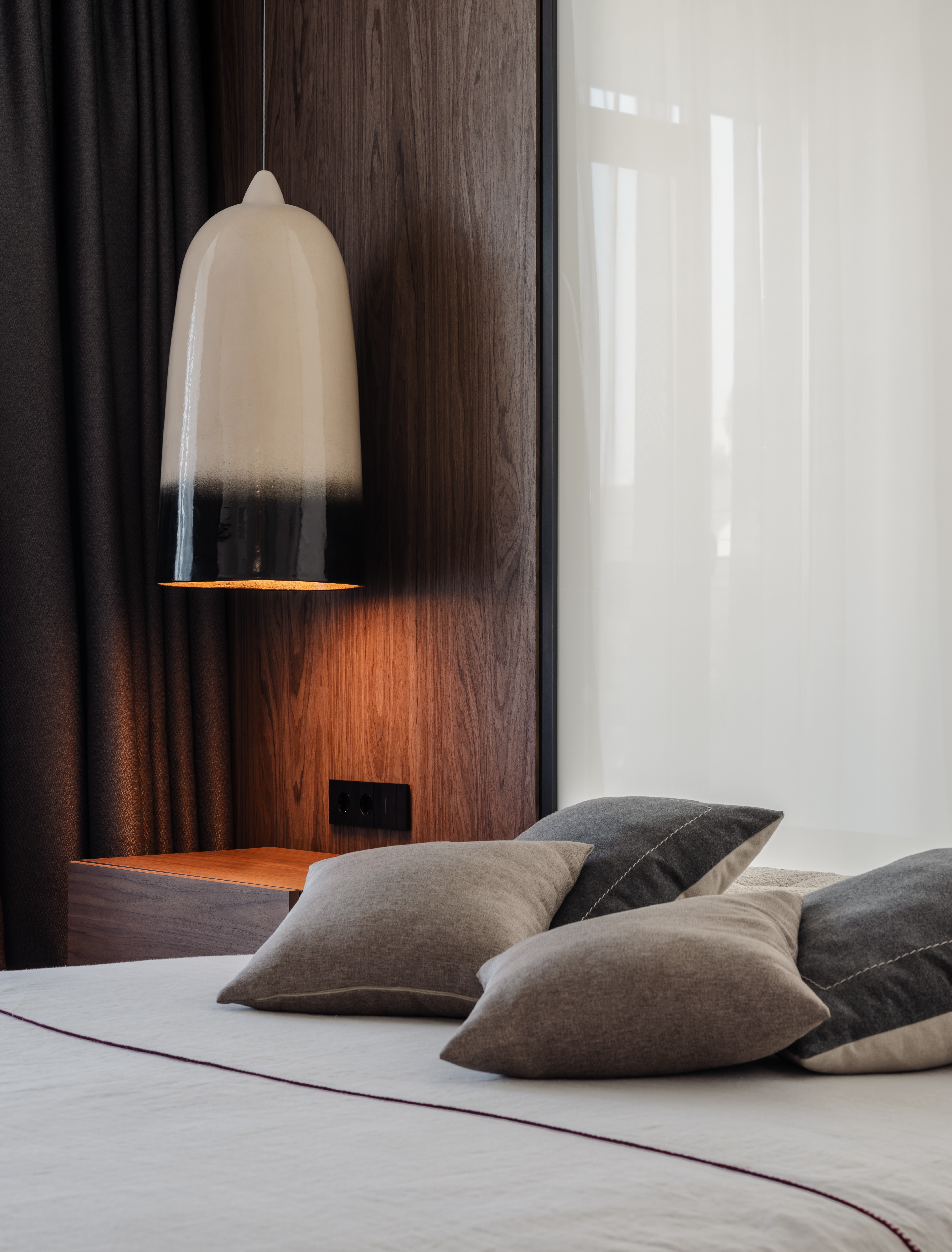 Концепція “сучасна класика” передбачає змішування традиційних сенсів з новітньою формою. “Салонний” декор стін у поєднанні з мідними аксесуарами, круглими дзеркалами, кам’яними поверхнями та всесезонною підсвіткою створюють розмаїття конотацій — від античності до “ревучих 30-х”. Ці елементи ідеально змішані із сучасним функціональним мінімалізмом, що робить PORODA HOUSE неповторним проєктом студії MAKHNO.
