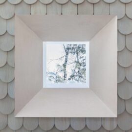 Дом находится в живописной местности около озер Каварта Лейкс. Дизайнеры создали выразительную входную группу, которая, в прямом смысле слова, «отражает природу региона». Внешняя отделка фасада выполнена из кедра в технике соу суги бан. Этот тип покрытия создан по японской технологии обработки поверхности дерева с помощью огня, что позволяет не только проявить текстуру древесины, но и защищает её от пожара, гниения и насекомых.