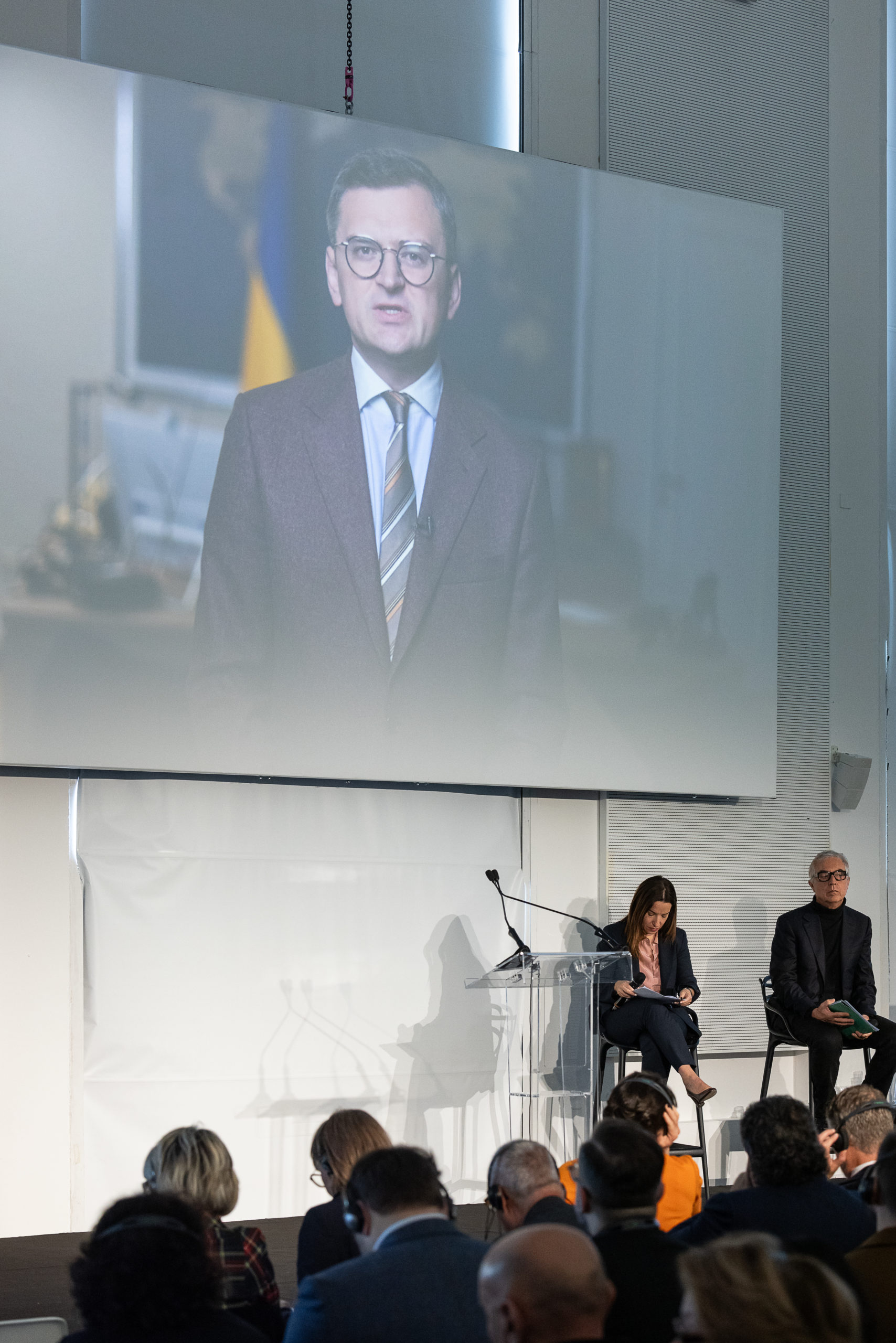 До конференції також долучився міністр закордонних справ України Дмитро Кулеба. Він не зміг бути присутнім, проте виступив по відеозв’язку. Фото – Gianluca Di Ioia