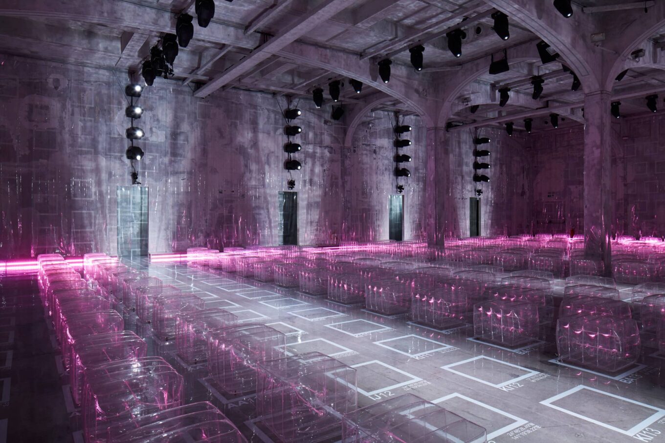 Как сообщили в АМО, Prada никогда не раскрывает проектировщикам детали предстоящего показа. Однако в данном случае использование прозрачного пластика и надувных стульев было согласовано с AMO на ранней стадии. Подсвеченные розовым светом, стулья, выстроенные идеально ровными рядами, судя по отзывам модной прессы, понравились гостям не менее, чем сама коллекция.