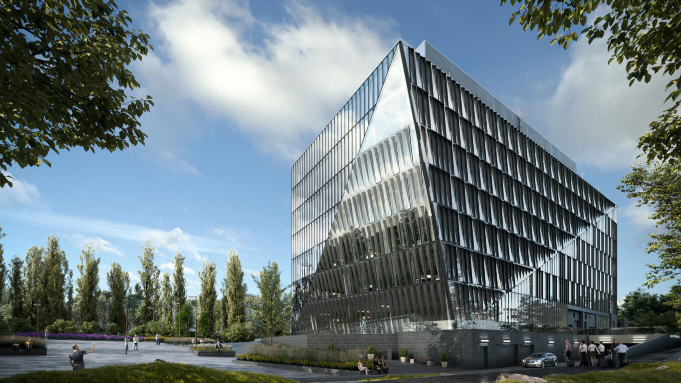 Бізнес-кампус В4 першого в Україні інноваційного парку Unit City — яскравий приклад унікального фасадного оформлення, що потребує індивідуального конструкторського підходу до систем скління. Семиповерхову будівлю динамічної ламаної форми планується ввести в експлуатацію вже цього року.