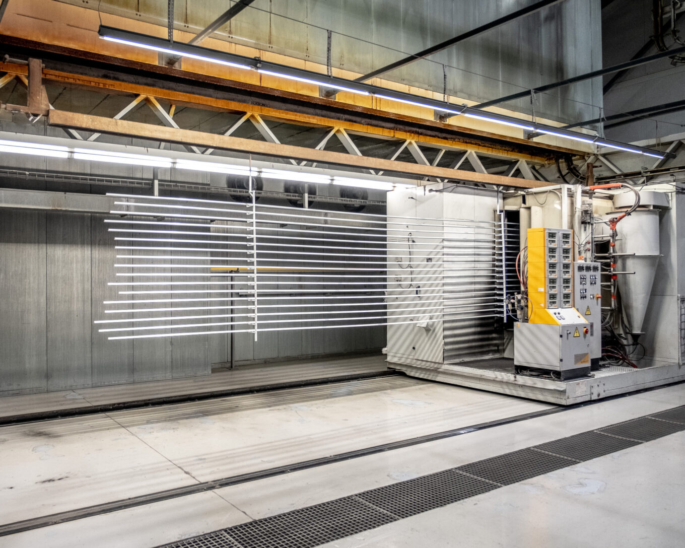 Фарбувальна лінія на виробництві Reynaers Aluminium. Нині українська філія компанії повністю відновила свою діяльність і активно працює, беручи в роботу як нові проєкти, так і окремі ініціативи з відновлення України. Зображення надане компанією Reynaers Aluminium
