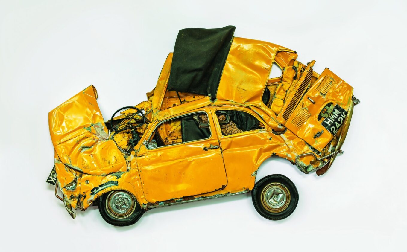 Артінсталяція Pressed Flower, створена дизайнером у 2013 році, складається зі спресованого утилізованого автомобіля Fiat 500