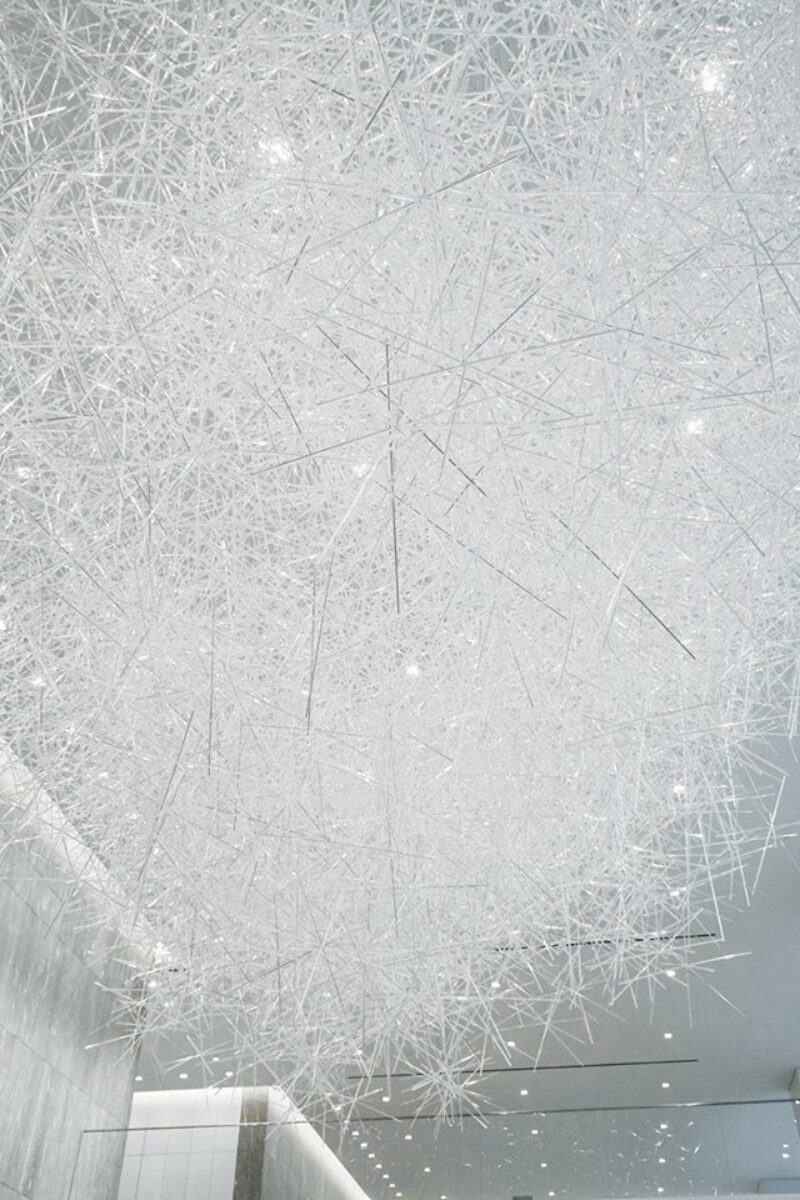 Новый арт-объект от Токудзина Ёсиока выполнен в его фирменной манере – 20 тысяч призматических стержней составлены в гигантскую и при этом эфемерную световую скульптуру.