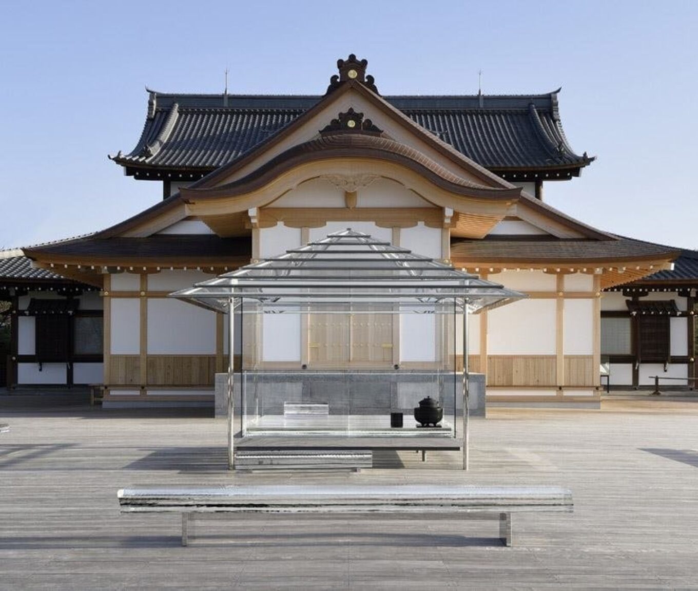 Философию легкости и прозрачности привычных вещей Ёсиока воплотил и в задуманном для Венецианской биеннале, а затем воплощенном на террасе древнего киотского храма Сериюден хрустальном чайном домике. О нем мы рассказывали вот здесь: https://goo.gl/H22jQU