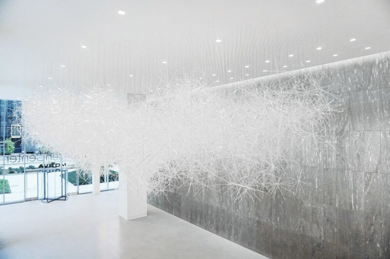 Такой же изящной и хрупкой, не смотря на колоссальные размеры, воспринималась инсталляция «Торнадо», созданная дизайнером в 2015 году. Тогда публику удивили масштабы композиции – более чем 2 млн. белоснежных соломинок создавали визуальный эффект скопления облаков в выставочном пространстве.