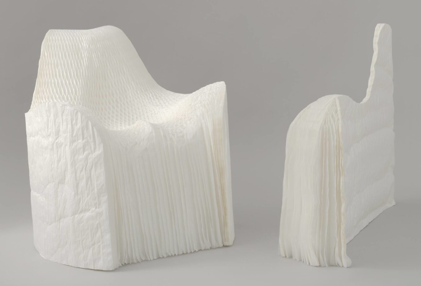 Сам же Ёсиока славится простыми и одновременно необычными объектами, которые отражают природные явления или представляют собой переосмысленные повседневные предметы. Еще в 2001 году дизайнер представил необычную коллекцию кресел-трансформеров Honey Pop, сделанных из листов прессованной бумаги, раскладывающихся по принципу веера. Они казались невесомыми и повторяли все анатомические особенности присевших на них людей.
