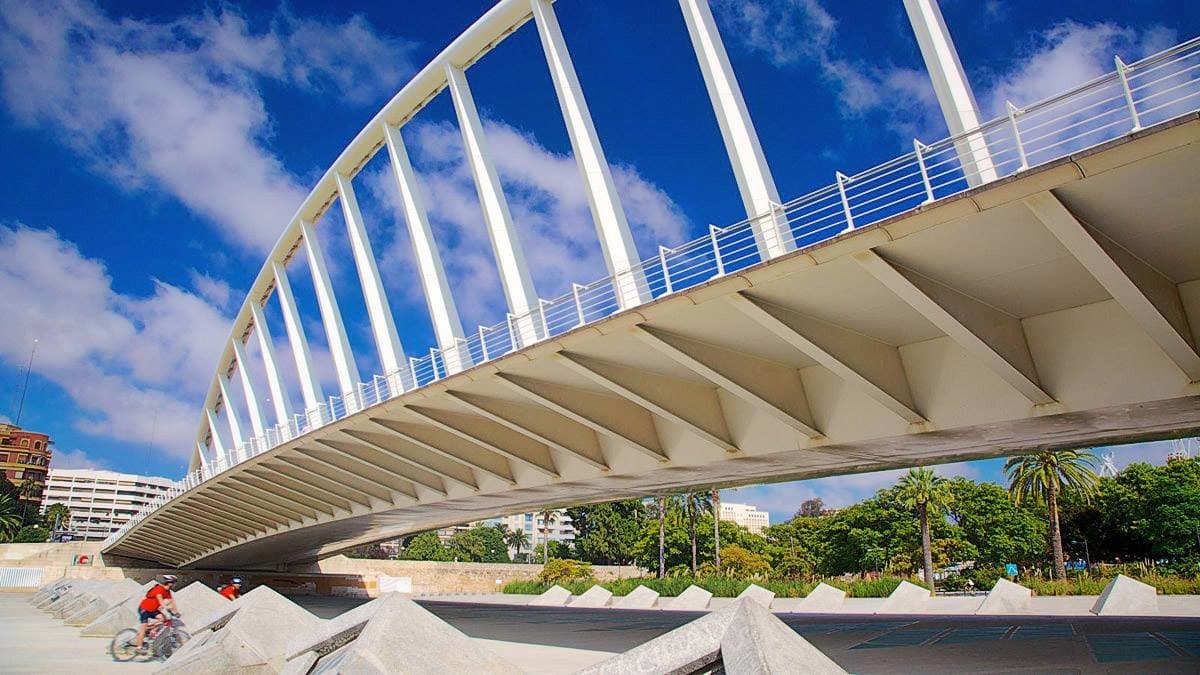 Мост La Peineta в районе станции метро Аламеда. Построен в 1991-1995 годах по проекту Сантьяго Калатравы из высокопрочной стали. Вес сооружения несет дугообразная балка, перекинутая через бывшее русло реки Туриа, благодаря ее форме мост и получил название «Ла Пейнета» – гребенка.