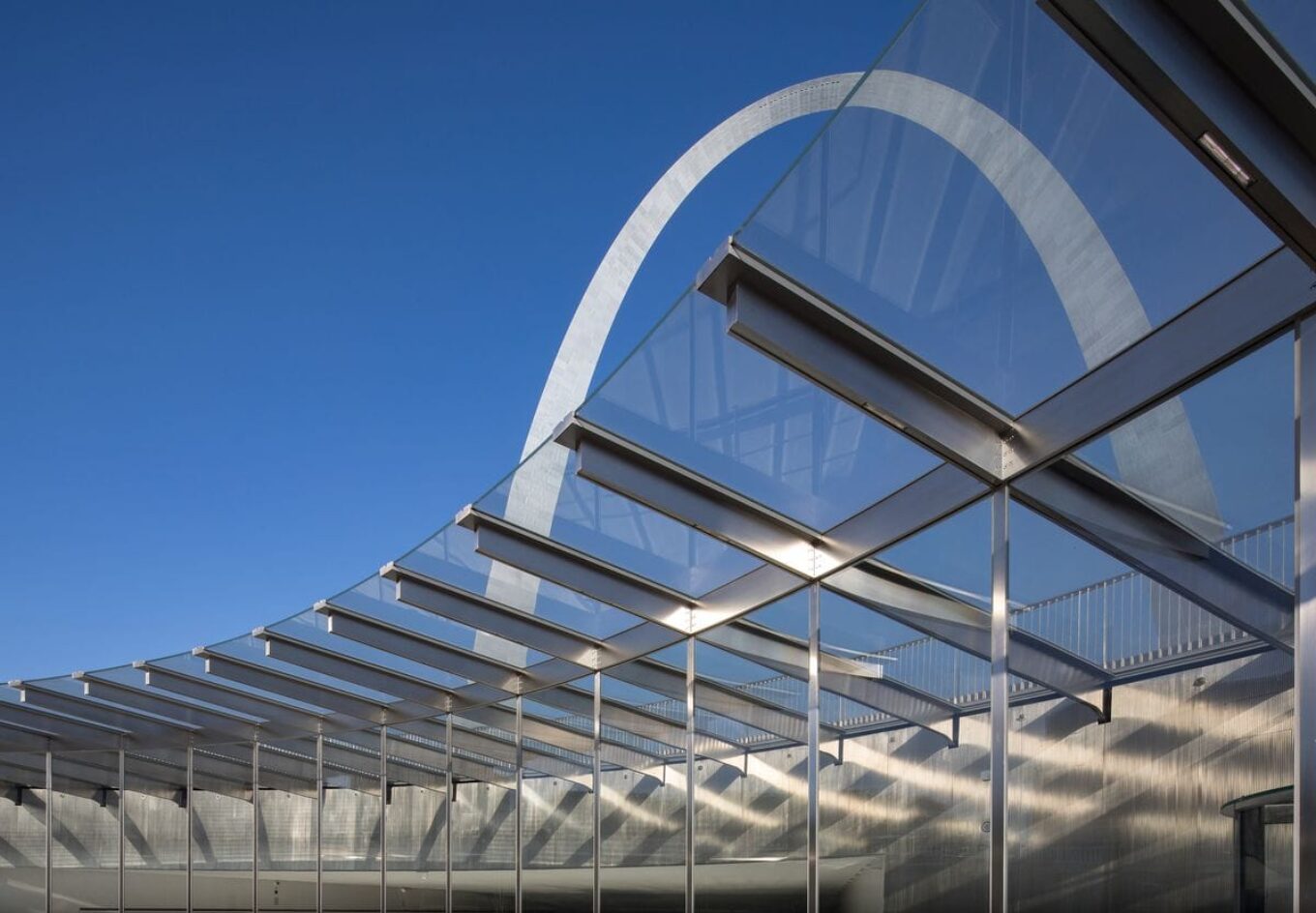 «Новые пространства теперь гармонично интегрированы в ландшафт», – заявил архитектор Джеймс Карпентер, основатель James Carpenter Design Associates, – «дуга из стекла – стала отражением арки, которая вздымается в небо»